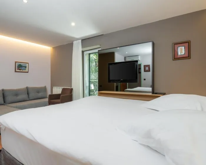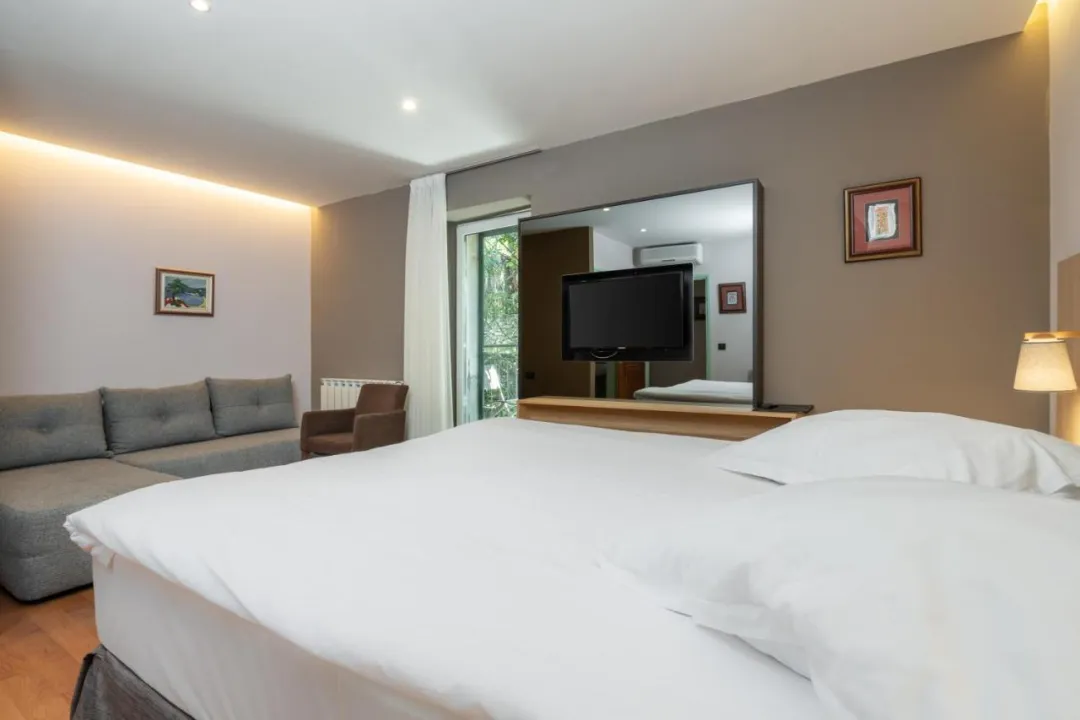 Klima uređaj i centralno grejanje osiguravaju da sobe održe udobnu temperaturu. Gosti mogu uživati u pogledu na more sa balkona ili privatne terase nekih soba. Sve sobe su sa tepihom i imaju bračni krevet, krevet queen size ili sofu na razvlačenje. Pored toga, tu je i radni sto. Telefon, televizor sa satelitskim/ kablovskim kanalima i WiFi (bez dodatne naplate) pružaju sve što je potrebno za udoban odmor. Kupatila uključuju fen za kosu i opremljena su tušem i kadom. Kao posebna pogodnost, kupatila su opremljena kozmetičkim proizvodima i izborom peškira. Hotel ima sobe za nepušače.
