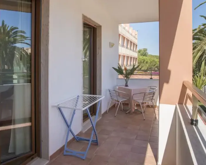 Klimatizacija i centralno grejanje osiguravaju da sobe održavaju ugodne temperature. Gosti mogu uživati u pogledu na vrt sa balkona ili terase. Sobe imaju bračni krevet i kauč na razvlačenje. Dostupne su odvojene spavaće sobe. Dodatni kreveti se mogu zatražiti. Na raspolaganju su i sef, mini bar i radni sto. Čajna kuhinja ima frižider, šporet i mikrotalasnu pećnicu. Telefon, TV i ViFi (bez doplate) pružaju sve što je neophodno za ugodan odmor. Kupatila su opremljena tušem, kadom i bideom. Za svakodnevnu upotrebu na raspolaganju su fen za kosu i telefon. Hotel ima porodične sobe i sobe za nepušače.
