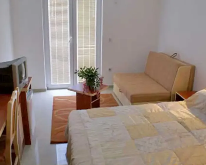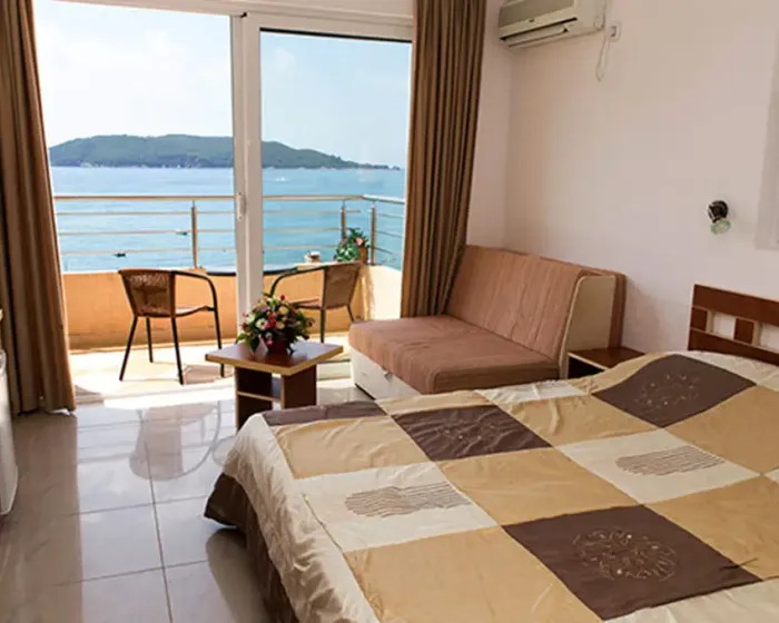 Sve sobe imaju klimu, balkon, TWC, televizor sa kablovskim programom, frižider. Sobe su dvokrevetne i trokrevetne i imaju pogled na more.