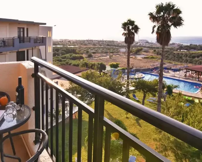Hotel Ocean Heights View Hersonissos Krit se nalazi u okrugu Anissaras, na oko 3 kilometra udaljenosti od Hersonisosa i na oko 10 kilometara od grada Malia. Plaža je udaljena oko 900 metara od hotela. Za goste hotela je obezbedjen besplatan transfer do Hersonisosa - 2 puta dnevno (osim nedelje), kao i besplatan prevoz do plaže 3 puta dnevno (osim nedeljom). Hotel ima ukupno 126 soba, usluga je all inclusive.