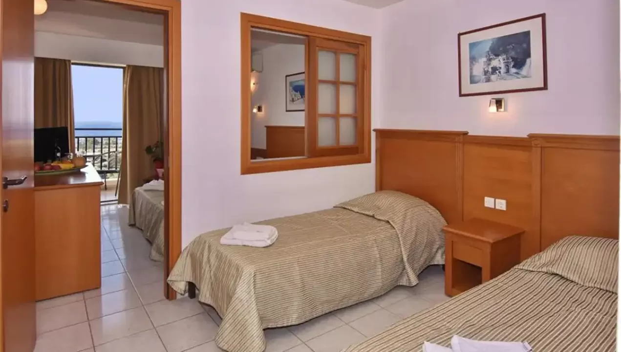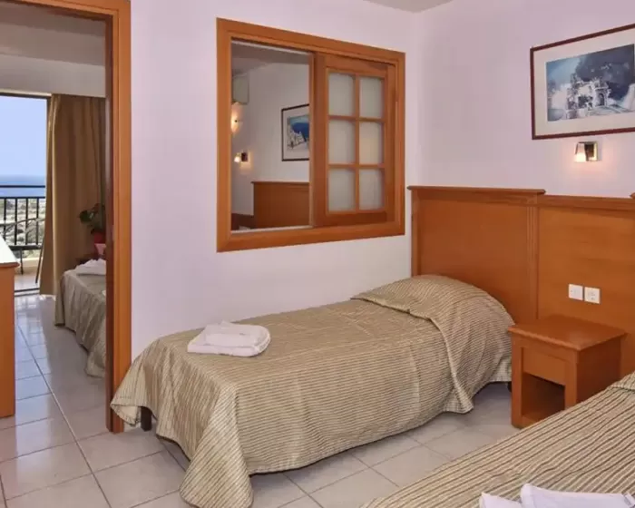 Ukupno 126 soba:  Singles & Doubles (~26 m²), Family Rooms (~32 m²). U sobi: klima uredjaj, telefon, mini frižider, SAT TV, kada / tuš, fen za kosu, sef (uz doplatu na licu mesta), balkon / terasa.Single & Double - Francuski ležaj ili 2 odvojena ležaja. Dodatni ležaj za treću osobu.Family Room - Jedna soba ima francuski ležaj i odvojenu spavaću sobu sa 2 odvojena ležaja.Tip dodatnog ležaja - standarni na razvlačenje.