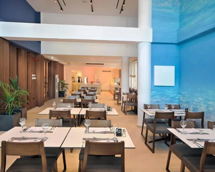 U okviru hotela nalaze se restoran, sala za doručak, kafe i bar. Klimatizovani restoran za nepušače obezbeđuje dečje stolice, dok je bar na plaži idealan za osveženje tokom toplih dana. Dostupni su usluga polupansiona, punog pansiona i all inclusive ponude. Kontinentalni doručak na bazi švedskog stola, kao i ručak i večera, nude bogat izbor jela. Dijetalni, vegetarijanski i dečji obroci dostupni su na zahtev, kao i užine i posebni obroci. U ponudi su bezalkoholna i alkoholna pića.