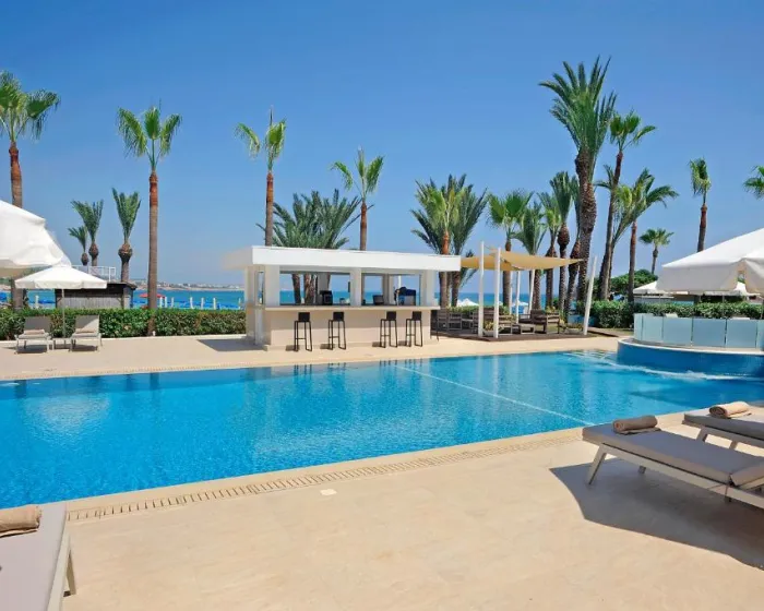 Hotel Okeanos Beach Ayia Napa se nalazi na luksuznoj plaži u Aja Napi, nasuprot tradicionalne ribarske luke. Slikoviti pogledi na zaliv doprinose prijatnom, opuštajućem i mirnom boravku. Prodavnice, barovi, restorani, noćni život i veze sa javnim prevozom nalaze se u neposrednoj blizini hotela. Grad Larnaka udaljen je oko 45 km, dok je aerodrom u Larnaki približno 50 km od hotela.