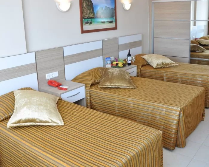 Dvokrevetne sobe su sa francuskim i jednim single krevetom,površine 22m². Trokrevetne poseduju standardnu opremu, sa jednim francuskim i jednim singl krevetom, površine 30m². Family room su komfornije i pružaju prijatan boravak za porodice. Hotel broji oko 90 soba.