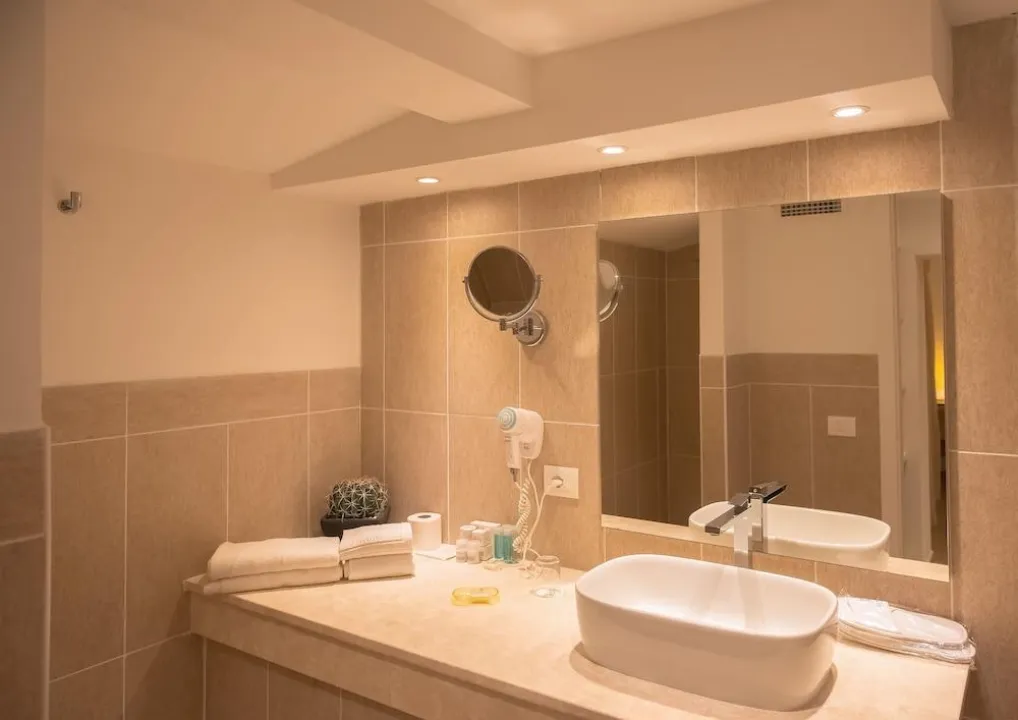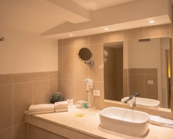 Klima uređaj i centralno grejanje osiguravaju da sobe održavaju udobnu temperaturu. Gosti mogu opustiti i uživati u pogledu na more sa balkona ili privatne terase nekih soba. Sobe imaju bračni krevet i sofu na razvlačenje. Kreveti za decu i dodatni ležajevi mogu se zatražiti za mlađe goste. Sef, mini bar i radni sto su takođe dostupni. Gosti će takođe pronaći frižider među standardnim sadržajima. Pegla za pantalone je obezbeđena radi konfornosti gostiju. Telefon, satelitska televizija i WiFi (bez dodatne naplate) su takođe obezbeđeni. Dnevne novine su dostupne gostima u sobama. Kupatila su opremljena tušem i kadom. Fen, ogledalo za šminkanje, bade mantili i telefon su dostupni za svakodnevnu upotrebu. Mogu se rezervisati sobe prilagođene za osobe sa invaliditetom. Hotel ima porodične sobe i sobe za nepušače.