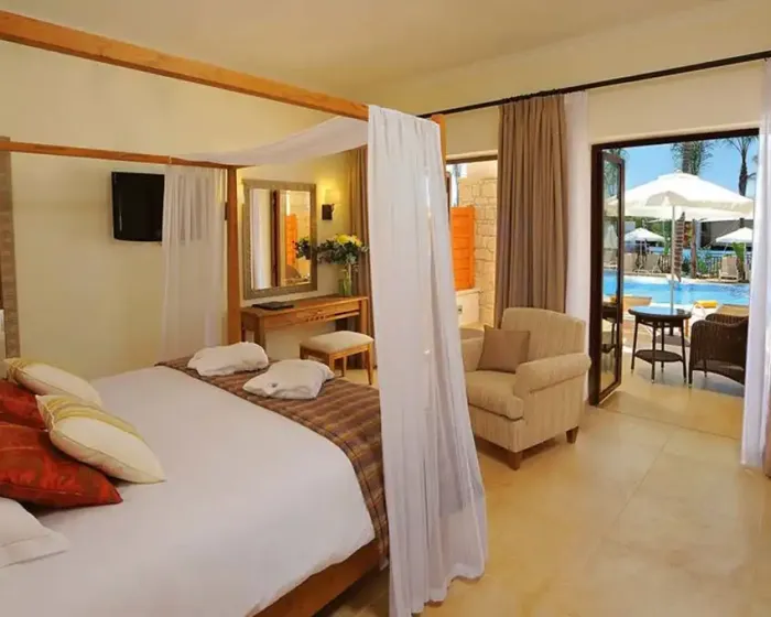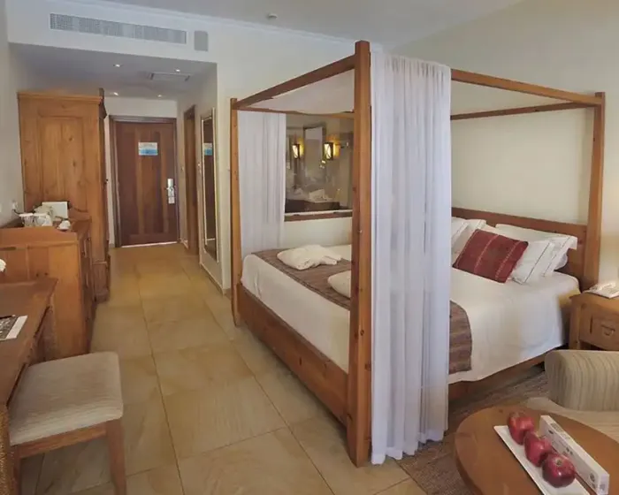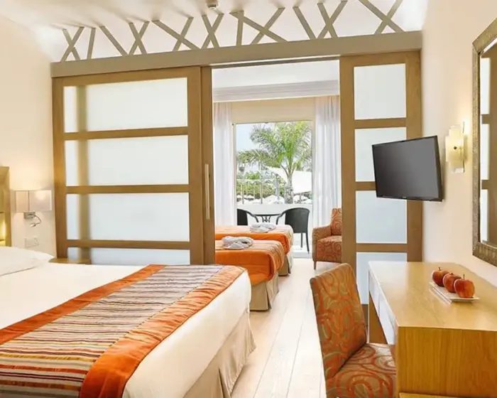 Ukupno 314 soba: Deluxe IV/PV or GV (~28 m2), Superior Rooms IV/ PV or GV (~30 m2), Superior Rooms Private Garden (~30 m2), Family Junior Suites IV/ PV or GV (~32 m2), Family Junior Suites Private Garden IV (~32 m2), Family Junior Suites Private Garden PV (~32 m2), Garden Rooms Private Garden (~38 m2), Garden Rooms Private Pool (~38 m2), Suites Executive SV (~36 m2), Junior Suites GV or PV (~30 m2), Superior Rooms SV Olympic Bay (~25 m2), Honeymoon Rooms GV or PV (~38 m2).U sobama: klima uređaj, sef, Sat TV, mini frižider, direktni telefon, Wi-Fi Internet, kupatilo (tuš/ kada), toaletni set, fen, bade mantili ili papuče, oprema za pravljenje čaja i kafe, namešten balkon/terasa. Deluxe IV / PV or GV Francuski ležaj ili dva odvojena ležaja.Superior Room IV / PV or GV Francuski ležaj ili dva odvojena ležaja.Superior Room Private Garden Francuski ležaj ili dva odvojena ležaja.Family Junior Suite IV / PV or GV Nalaze se u blizini dečijeg bazena. Dve sobe sa kliznim vratima , francuski ležaj i dva odvojena ležaja ili kreveti na sprat.Family Junior Suite Private Garden IV Nalaze se u blizini dečijeg bazena. Dve sobe sa kliznim vratima , francuski ležaj i dva odvojena ležaja ili kreveti na sprat.Family Junior Suite Private Garden PV Nalaze se u blizini dečijeg bazena. Dve sobe sa kliznim vratima , francuski ležaj i dva odvojena ležaja ili kreveti na sprat.Garden Room Private Garden Nalaze se u prizemlju (dvospratnih zgrada). Dnevni boravak sa dva kauča na razvlačenje i jednom foteljom na razvlačenje (za jednu osobu) ili sofa na razvlačenje i ležaj na izvlačenje i u drugoj postoriji, kliznim vratima odvojen, bračni ležaj.Garden Room Private Pool Nalaze se u prizemlju (dvospratnih zgrada). Privatni bazen. Dnevni boravak sa dva sofe na razvlačenje i jednom sofom na razvlačenje (za jednu osobu) ili sofa na razvlačenje i ležaj na izvlačenje i u drugoj postoriji, kliznim vratima odvojen, francuski ležaj.Suite Executive SV Nalazi se u centralnoj zgradi. Dnevna i spavaća soba su odvojene vratima. U dnevnom boravku- sofa na razvlačenje i fotelja na razvlačenje; spavaća soba sa francuski ležajem. 2 televizora.Junior Suite GV or PV Samo za odrasle (18+). Tradicionalni stil, elegantan dekor, pogled na bazen i tropske vrtove, bračni ležaj.Superior Room SV Olympic Bay Nalaze se u delu hotela namenjenom za odrasle (18+). Francuski ležaj.Honeymoon Room GV or PV Samo za odrasle (18+). Romantičan enterijer, dnevni boravak sa sofom, francuski ležaj.