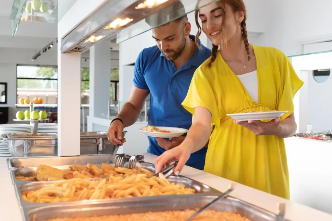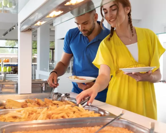 U okviru objekta nalaze se restoran, kafić i bar. Osveženja su dostupna i u baru na plaži. U ponudi su pansionski i all inclusive obroci. All inclusive usluga uključuje bezalkoholna pića, užine i pripremu hrane pred gostima. Služe se doručak, ručak i večera. Na zahtev se mogu pripremiti dijetalni i dečiji obroci, kao i specijalne opcije u ishrani.