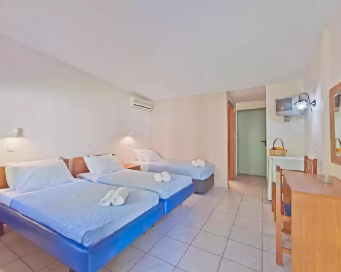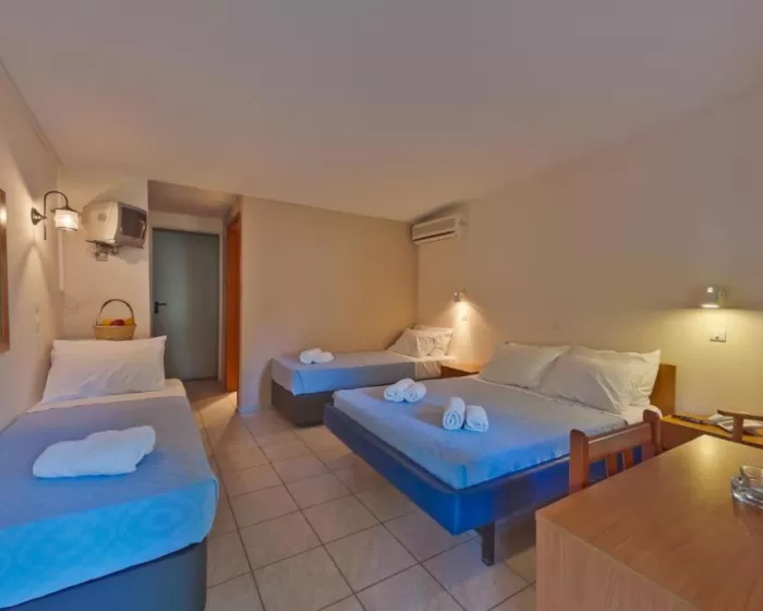 Sobe su klimatizovane i iz pojedinih se pruža pogled na vrt sa balkona ili terase. U sobama se nalazi sofa na razvlačenje, a na zahtev se mogu dobiti dečiji ili dodatni kreveti. Vrednosti se mogu odložiti u sef (uz doplatu). U okviru sobe dostupni su frižider, telefon, satelitska televizija i besplatan WiFi. U sobama se nalaze i papuče. Kupatila su opremljena tuš kabinom i kadom, fenom za kosu i osnovnim toaletnim priborom. Hotel nudi porodične i sobe za nepušače.
