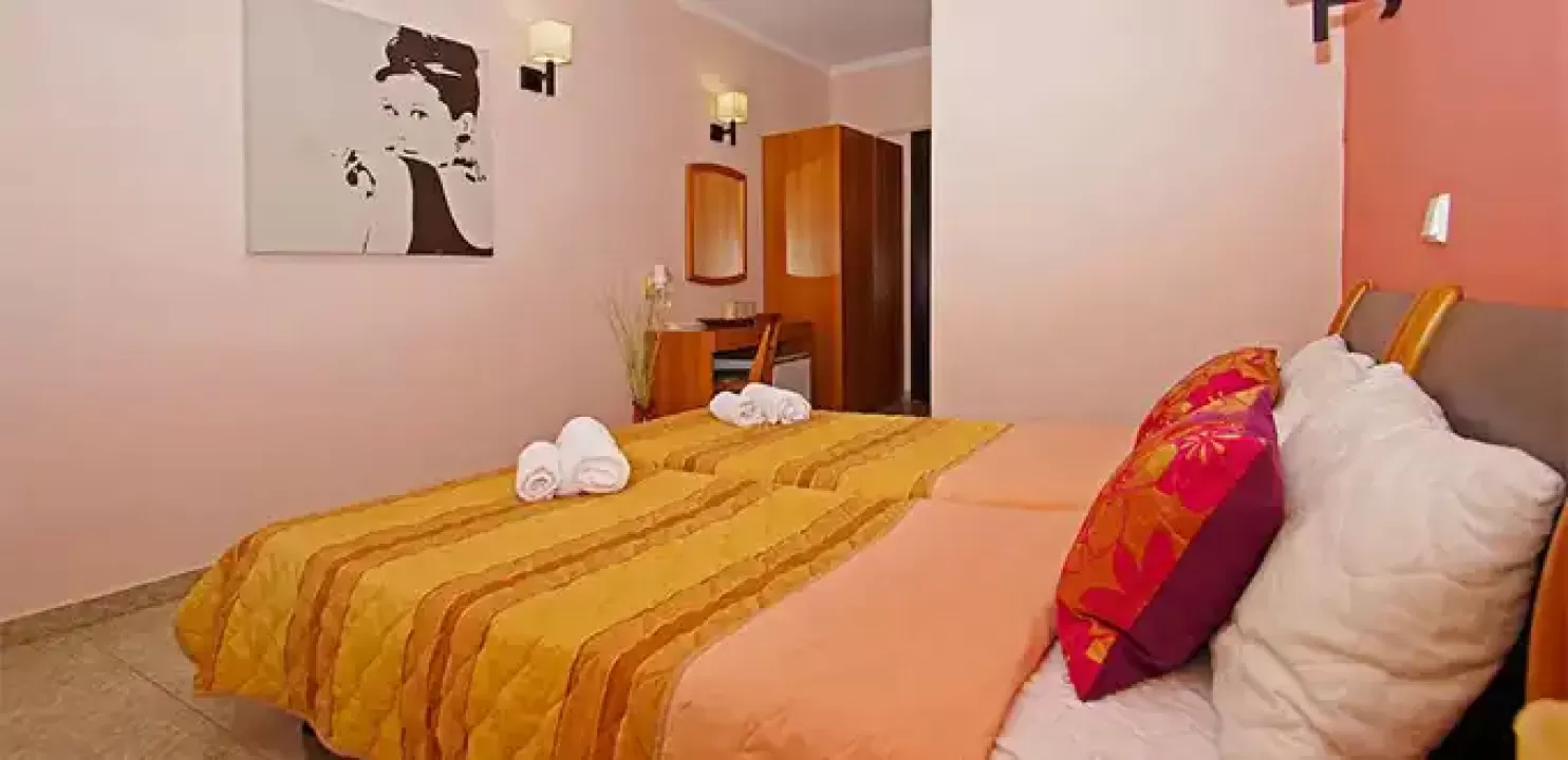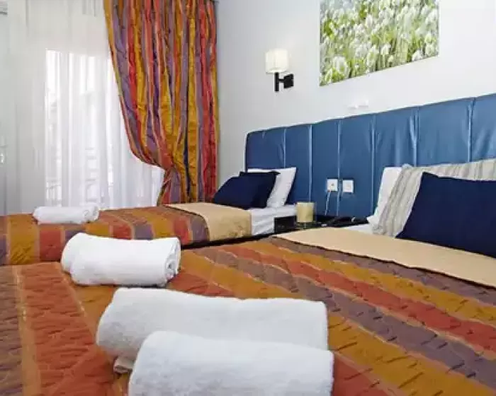 Ukupno 28 soba: Singles & Doubles (Jednokrevetne i dvokrevetne sobe, ~22 m²), Triples (Trokrevetne sobe, ~27 m²).U sobama: klima, grejanje, SAT TV, telefon, wifi internet, frižider, kupatilo (kada/tuš), fen, balkon.dete do 4.99 godina boravi besplatno, bez zasebnog ležaja.