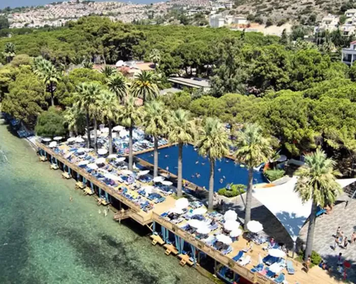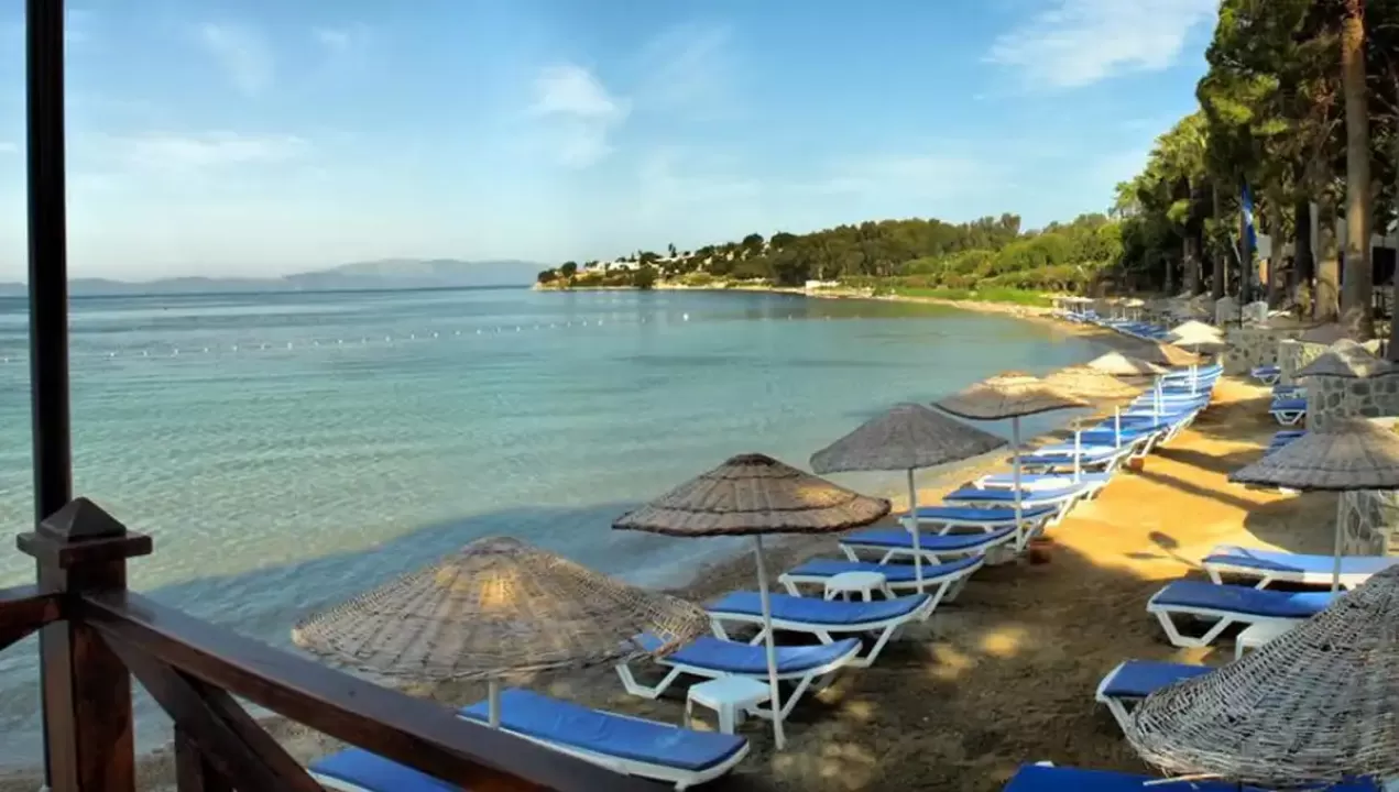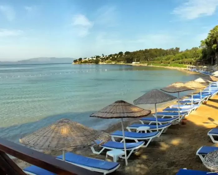 Hotel Omer Holiday Resort Kušadasi se nalazi na samoj peščanoj plaži Long beach okružen zelenilom, oko 4 kilometara od Kušadasija. Plaža je peščana i dužine oko 240 metara (relativno uska) i delom sa platoom sa koga se stepenicama ulazi u more, suncobrani, ležaljke, peškiri za plažu i prostirke na plaži (hotelskom delu plaže) i pored bazena su besplatni za goste hotela. Hotel je renoviran 2012. godine. Usluga u hotelu je all-inclusive.