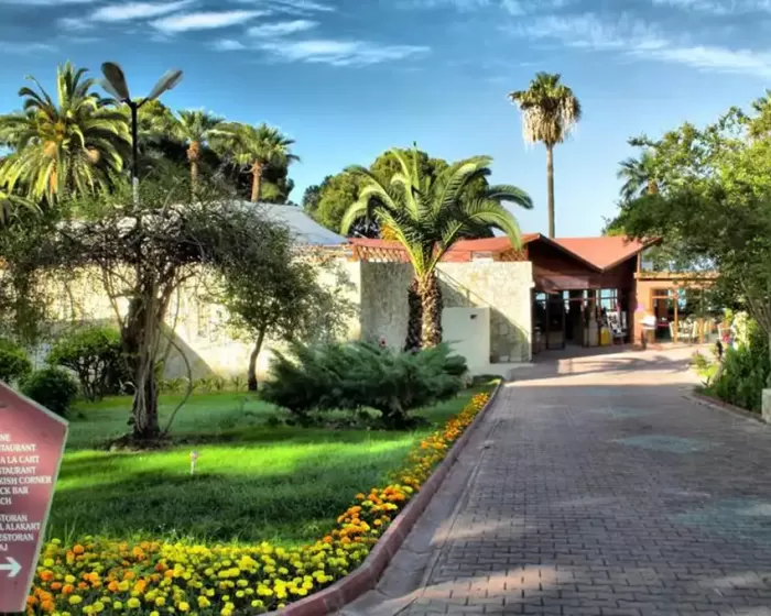 recepcija, lobi, glavni restoran, a la carte restoran (jednom besplatno u toku boravka, uz rezervaciju), 5 barova, spoljašnji bazen, dečiji bazen, 2 tobogana, WiFi na teritoriji hotela, teniski teren, stoni tenis, košarka, odbojka, mali fudbal, fitnes centar, tursko kupatilo, sauna, masaža, dečiji klub (4-12 godina), animacija. Plaćaju se: internet kafe, bilijar, elektronske igre, sportovi na vodi, masaže i tretmani u spa centru i turskom kupatilu, frizerski salon, doktor, usluga pranja i peglanja veša, prodavnice