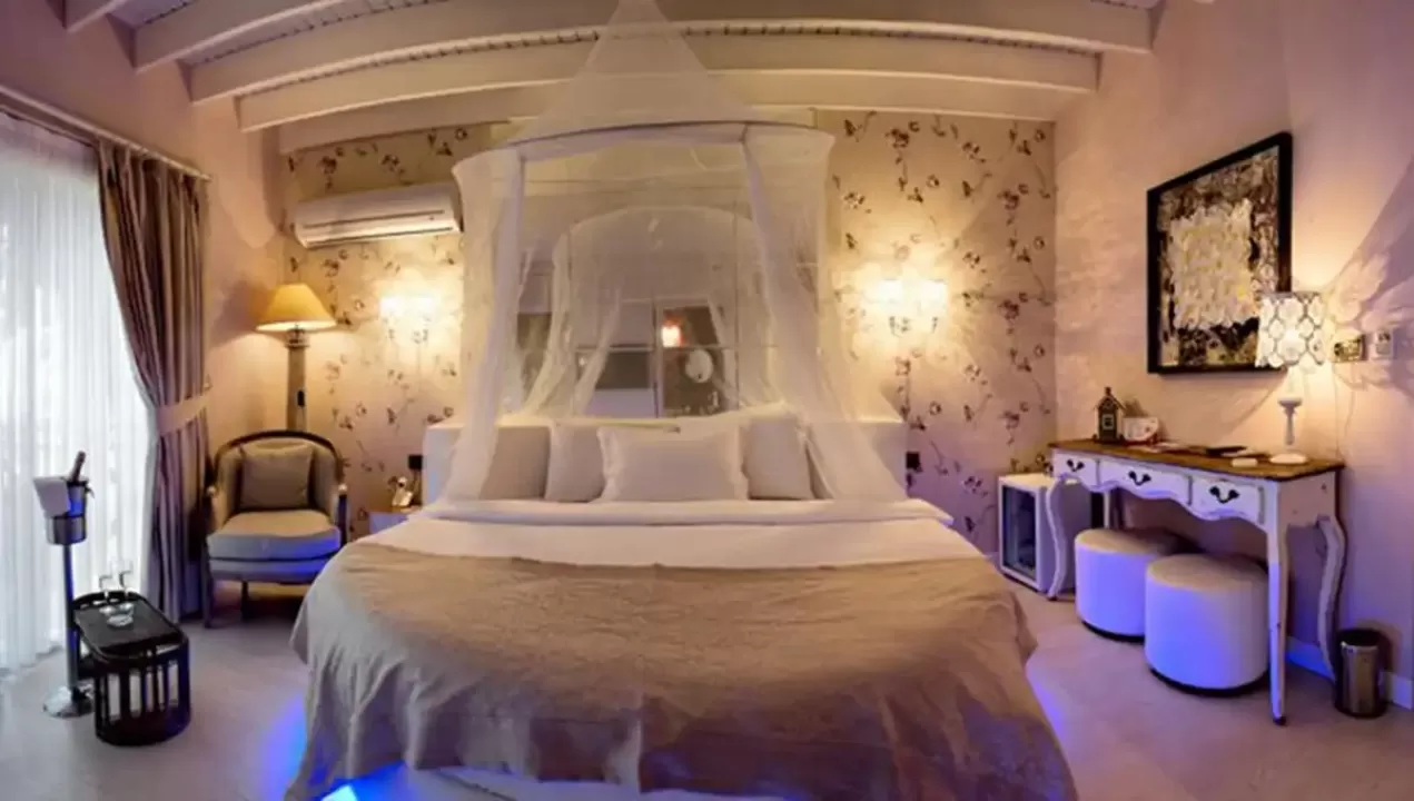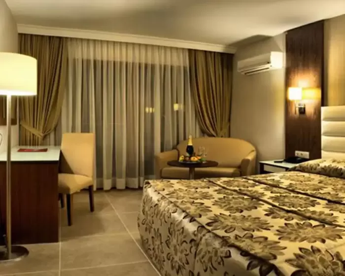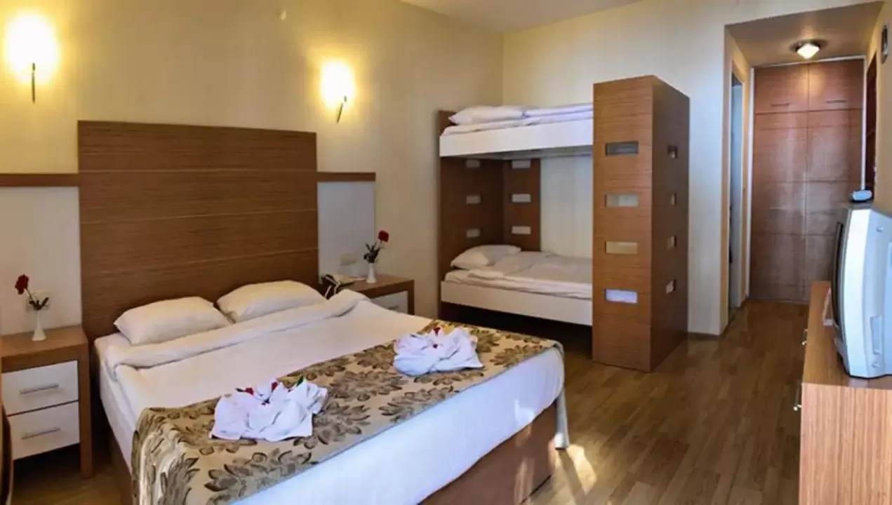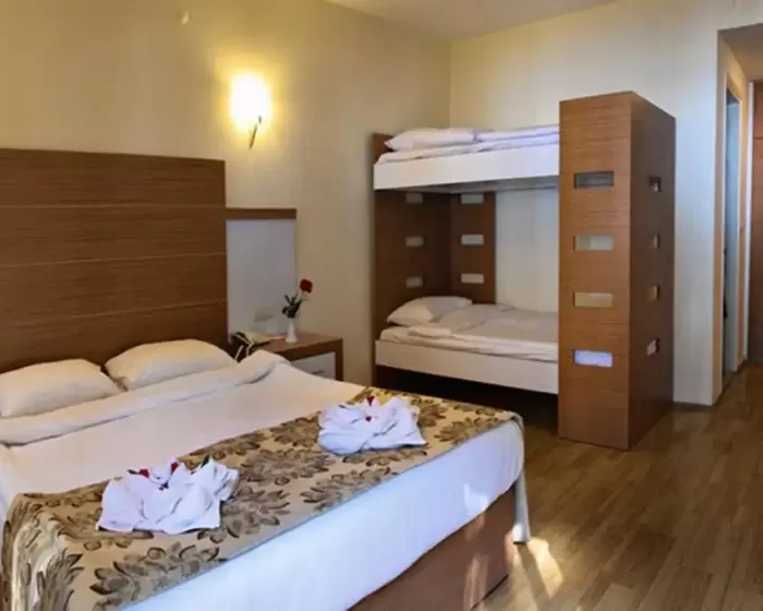 Hotelski kompleks raspolaže sa jednom trospratnom zgradom u kojoj se nalazi 55 Superior soba (površine 24-31 m², za maksimum 3 osobe) i klub delom u kom se nalazi: 84 Club sobe (površine 19-25 m², neke od njih imaju krevete na sprat, za maksimum 2+2), 35 Club family soba (površine 35 m², dve prostorije odvojene vratima, za maksimalno 4+1) i 19 Dublex family soba (površine 40 m², u prizemlju dva ležaja i kupatilo sa tušem, na spratu francuski ležaj i kupatilo sa džakuzijem, za maksimum 5 osoba). Sve sobe su klimatizovane i imaju balkon ili terasu, satelitsku TV, sef, mini bar, telefon i fen.