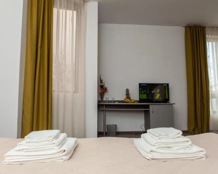 Klima uređaj i centralno grejanje obezbeđuju udobnu temperaturu u sobama. Gosti mogu uživati u pogledu na dvorište sa terase ili balkona. Sobe imaju bračni krevet. Dodatni kreveti mogu biti zatraženi. Mini bar je dostupan. Gosti će takođe pronaći aparat za kafu/čaj među standardnim sadržajima. Direktni telefonski poziv, televizor sa satelitskim/kablovskim kanalima i WiFi pružaju sve neophodno za udoban odmor. Fen za kosu i telefon su dostupni u kupatilima, koja su opremljena tuš kabinom. Hotel ima sobe za nepušače. Copyright GIATA 2004 - 2024. Višejezično, powered by www.giata.com za klijenta br. 124971