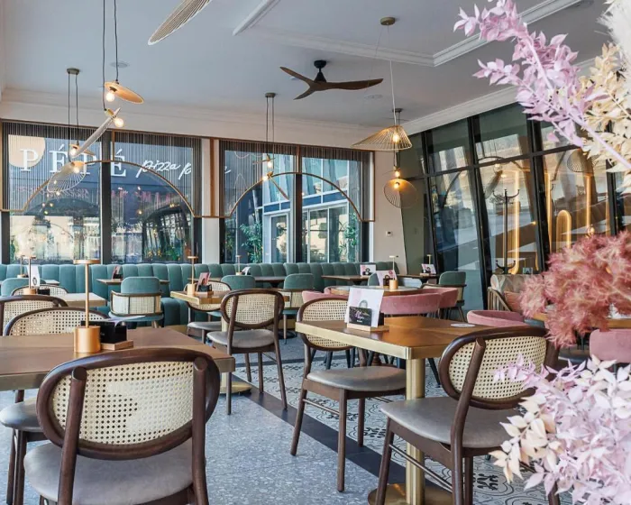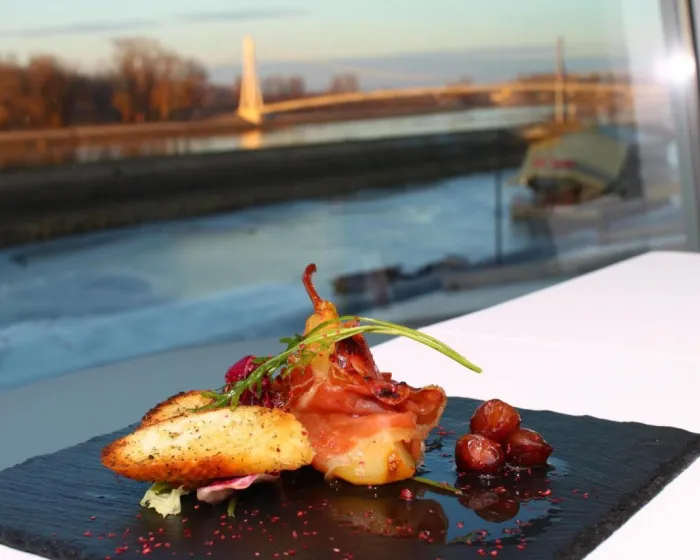 Bogat švedski sto doručak poslužuje se u restoranu "Meandar" sa pogledom na rečnu šetnicu. Alakart obroci su dostupni za ručak i večeru. Domaća vina, premium pića i cigare mogu se naručiti u hotelskom lobiju. Gosti mogu uživati u širokom izboru svežih kolača, kafe i domaće sladoleda na terasi hotela Osijek.