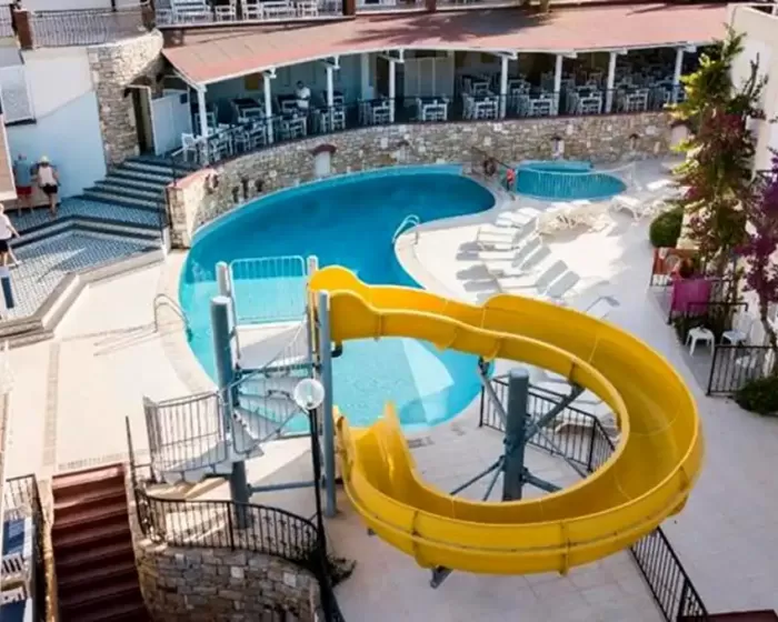recepcija, restoran, bar, bar pored bazena, snek bar, mini club za decu od 4 do 12 godina, igralište za decu, bašta, terasa za sunčanje, jedan tobogan, menjačnica, igraonica, bilijar, pikado, stoni tenis, WI-FI internet u zajedničkim prostorijama hotela