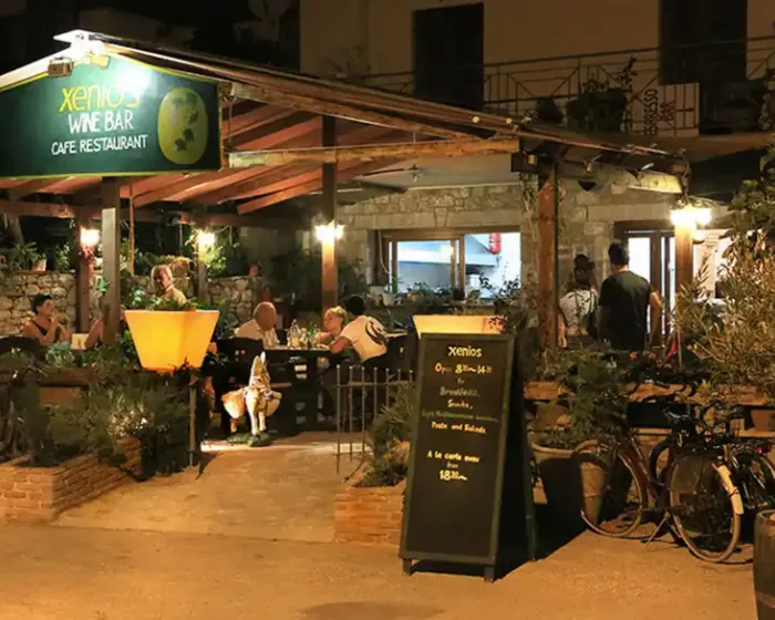 Hotel Pansion Xenios Stoupa se nalazi na peščanoj plaži i šetalištu mesta Agios Nikolaos, na oko 4 km od centra letovališta Stoupa, poznatog po jednoj od lepših plaža regije. Pansion Xenios je ekonomičan smeštaj, svaki studio je opremeljen mini kuhinjom podesnom za spremanje obroka, a u prizemlju se nalazi vinski bar i kafe restoran, gde se ujutru služi lokalni doručak.