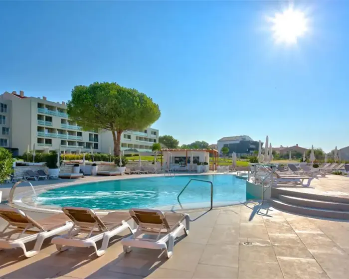 Hotel Park Plaza Belvedere Medulin je hotel kategorizacije četiri zvezdice, nalazi se na nekoliko koraka od plaže i na pešačkoj udaljenosti od grada Medulina. Ovaj elegantno uređeni hotel u ponudi ima spa i velnes centar, 2 otvorena bazena i restoran sa terasom. Hotel takođe poseduje aperitiv bar u lobiju, bar kraj bazena i a-la-carte restoran Lungomare. Autobusi staju ispred hotela i saobraćaju do okolnih mesta i gradova, dok se do Medulina može stići za 10 minuta hoda. Korišćenje ležaljki i suncobrana na hotelskoj plaži i pored otvorenih bazena dodatno se naplaćuje.
