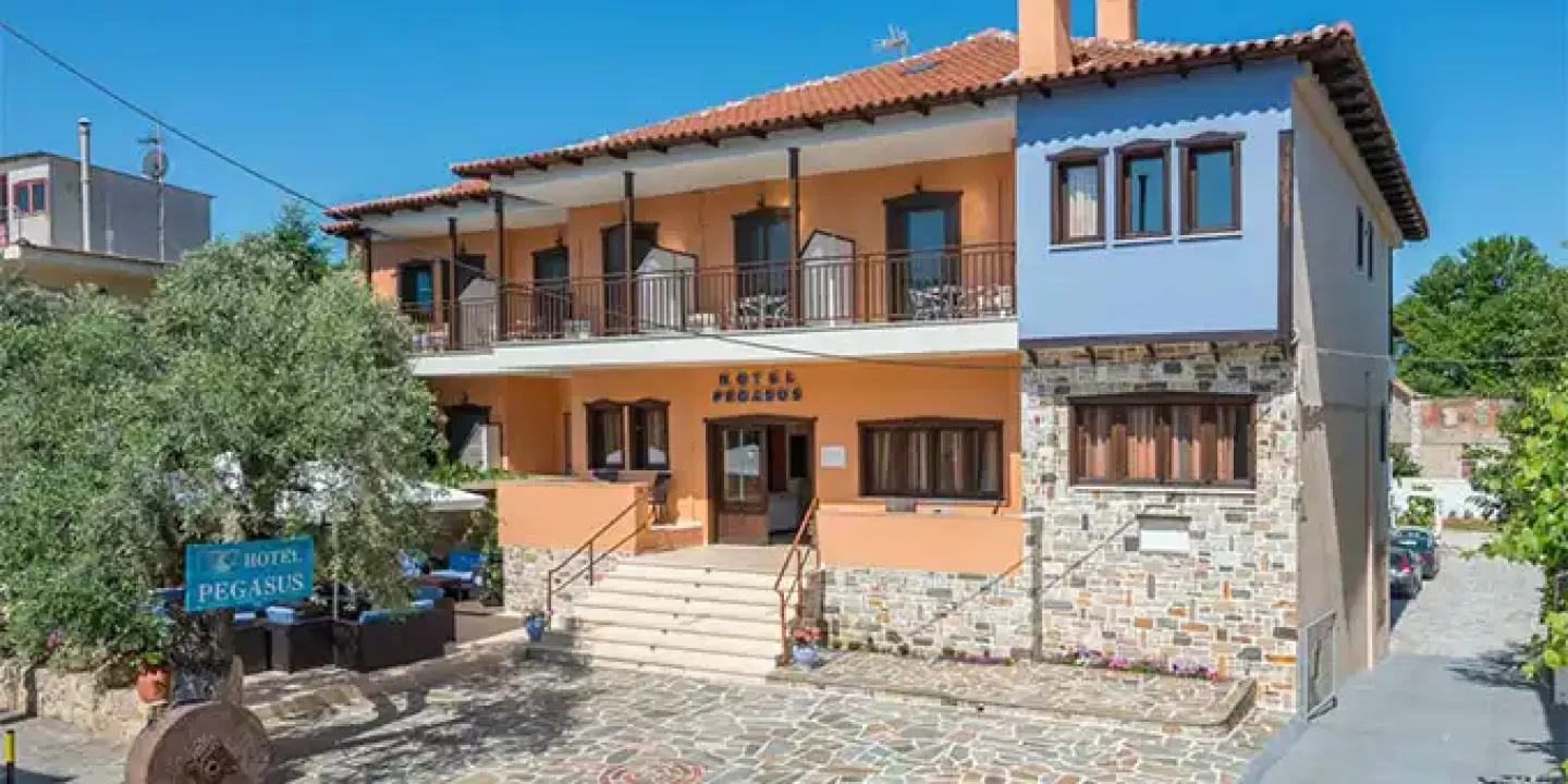 Hotel Pegasus Limenas je izgradjen u tradicionalnom stilu manjih hotela Tasosa, kapaciteta samo 27 soba, rapsoredjenih u jednoj zgradi objekta. Nalazi se u samom centru Limenasa, na oko 500 metara od glavne gradske plaže. U neposrednoj blizini hotela nalaze se mnogobrojni restorani, barovi, prodavnice, te je i jedan od najtraženijih hotela za smeštaj parova.