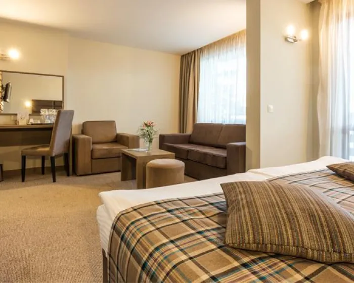 Standard sobaStandardna soba 16 m²   - sadrže dva standardna ležaja, grejanje, balkon, SAT-TV, telefon, mini bar, kupatilo.Junir suiteJunior Suite 38 m² - sadrže dva standardna ležaja, grejanje, balkon, SAT-TV, telefon, mini bar, kupatilo, frižider, čajna kuhinja.SuiteSuite sa jednom spavaćom sobom 45 m² - sadrže dva standardna ležaja, sofu na razvlačenje, grejanje, balkon, SAT-TV, radio, telefon, internet, mini bar, kupatilo, fen, čajna kuhinja.
