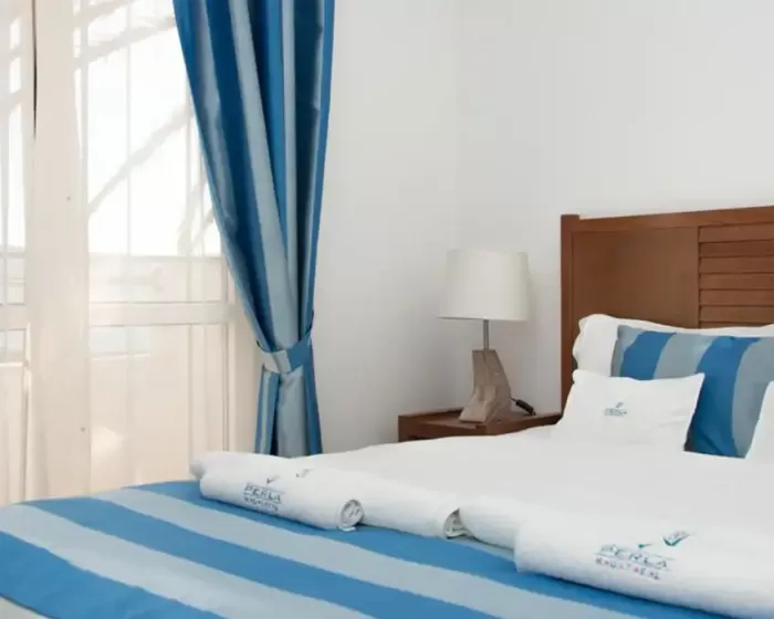 Standardne sobe:veličina sobe 20 m² (dva ili tri ležaja, veličine kreveta: 1 ekstra veliki bračni i 1 za jednu osobu), klimatizovane i poseduju terase sa i bez pogleda na more, kupatilo sa tuš kabinom, mini bar, LCD TV kablovski sistem, radio, telefon, fen, sefSuperior sobe:veličina sobe: 25 m² (dva ili tri ležaja, veličine kreveta: 1 ekstra veliki bračni i 1 pomoćni za 1 osobu), klimatizovane i poseduju terase sa pogledom na more, kupatilo sa hidromasažnom kabinom, mini bar, LCD TV kablovski sistem, DVD, radio, telefon, fen, sef
