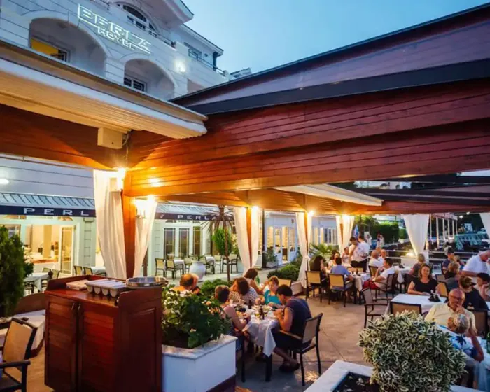 Hotel Perla Herceg Novi se nalazi na samoj obali, a od sopstvene plaže ga deli šetalište koje se prostire duž cele obale u dužini od 7 kilometara.Ishrana: doručak i večera - švedski sto.