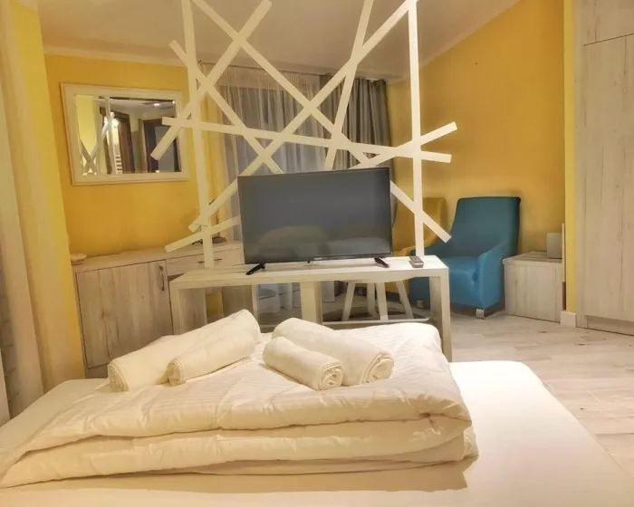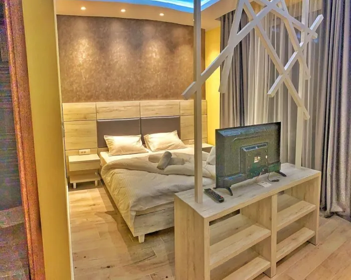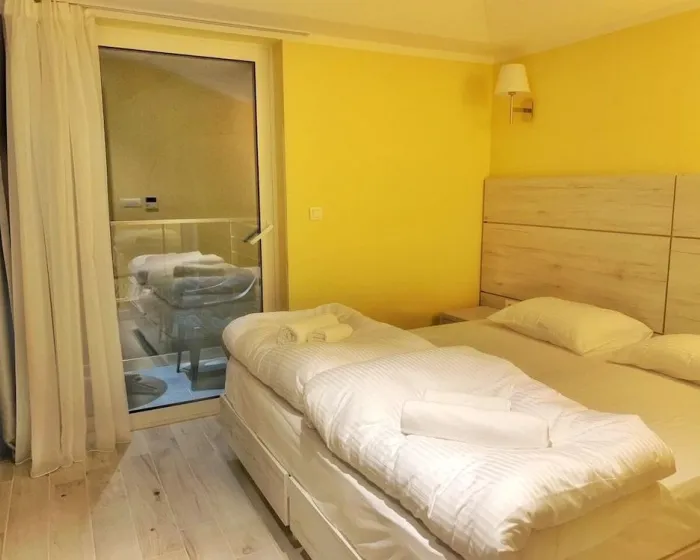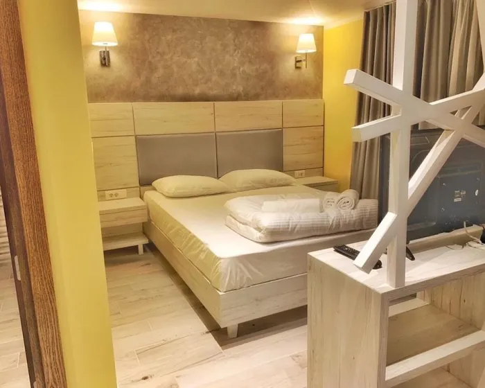 Klima uređaj i centralno grejanje osiguravaju udobne temperature u sobama. Gosti mogu uživati u pogledu na planinu sa balkona ili terase. Sobe imaju bračni krevet, krevet king-size ili sofu na razvlačenje. Sef, minibar i radni sto su takođe dostupni. U sobama su telefon, televizor sa satelitskim/kablovskim kanalima i WiFi (bez dodatne naknade), pružajući gostima mnogo načina da ostanu povezani i zabavljaju se. Papuče su uključene. Kupatila su opremljena tušem i uključuju fen za kosu. Kupatila takođe imaju kozmetičke proizvode i izbor peškira. Porodične sobe su dostupne za roditelje sa decom.