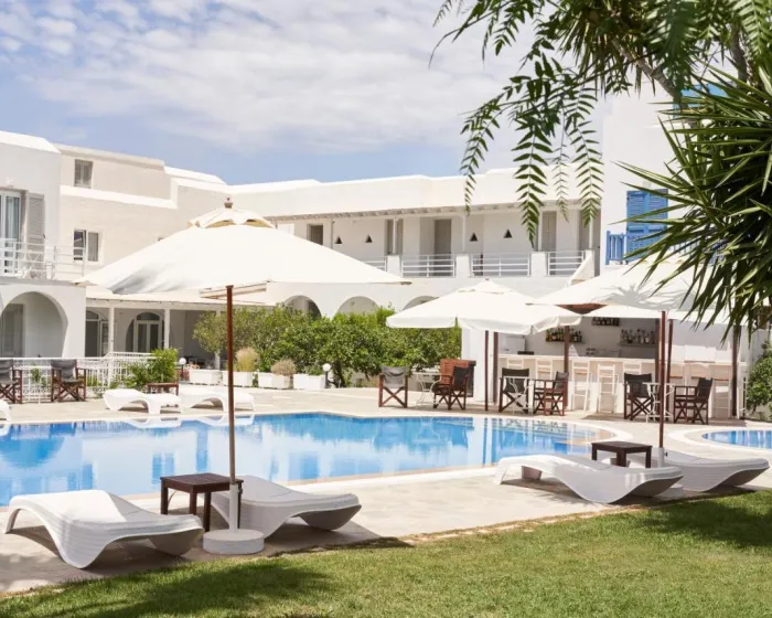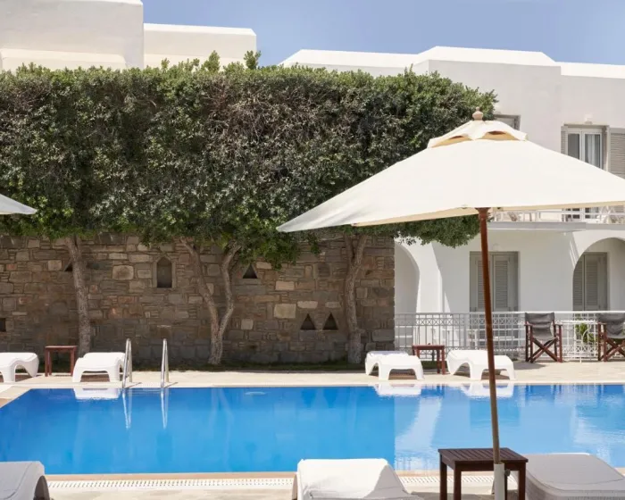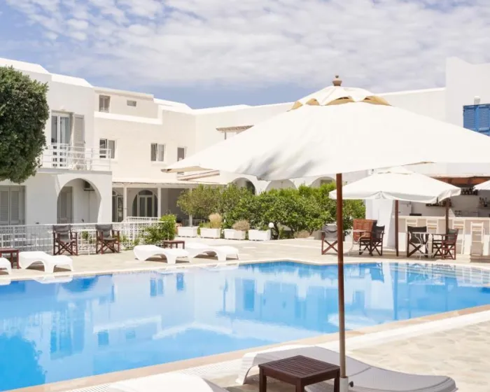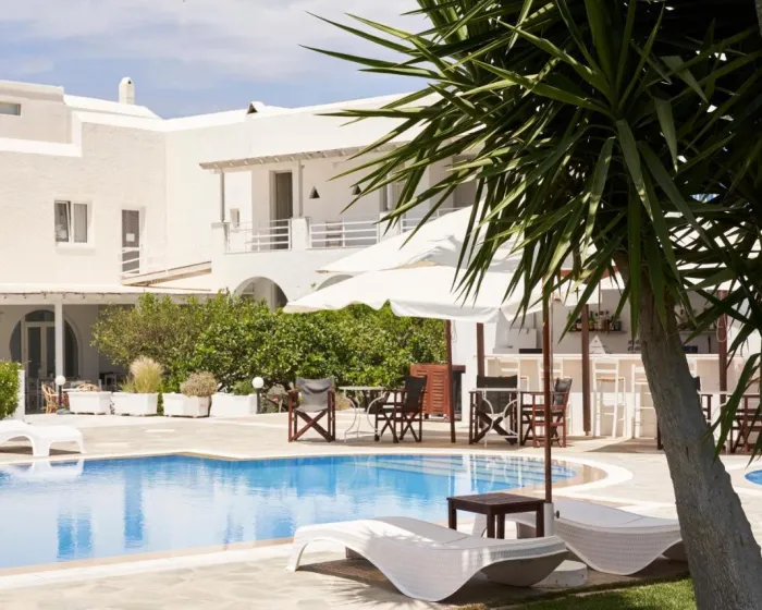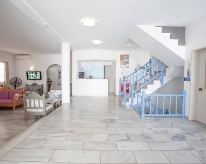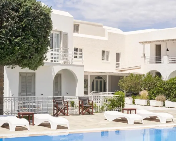 Hotel Polos Paros se nalazi oko 100 m od plaže Livadija, oko 700 m od luke Parikia i 8 km od grada Nausa. Hotel je udaljen samo dva minuta hoda od centra Parikije. Hotel ima lift i ima 44 sobe za nepušače. Osoblje na recepciji je ljubazno i srećno odgovara na sva pitanja. Sadržaji uključuju uslugu čuvanja prtljaga i sef. Bežični pristup internetu obezbeđen je u javnim prostorima. Turistički info pult pruža pomoć pri rezervaciji izleta. Takođe postoji nekoliko prodavnica. Vrt pruža dodatni prostor za odmor i relaksaciju na otvorenom. Dodatni sadržaji uključuju prostoriju sa TV-om, sobu za igru i biblioteku. Gostima koji dolaze automobilom omogućeno je besplatno parkiranje njihovih vozila. Dodatne usluge i sadržaji uključuju 24-časovnu sigurnosnu uslugu, uslugu iznajmljivanja automobila, medicinsku pomoć, transfer servis, uslugu posluge u sobi, uslugu pranja veša, samoposlužnu vešeraj i hotelski šatl autobus. Poslovni centar je na raspolaganju za poslovne potrebe gostiju.