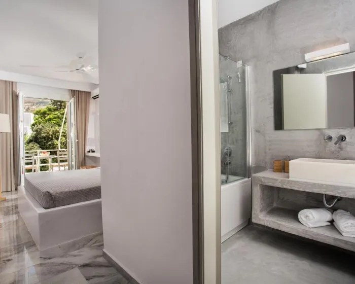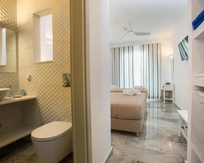 Klima uređaj i centralno grejanje obezbeđuju udobne temperature u sobama. U većini jedinica, gosti mogu uživati u pogledu na more sa balkona ili terase. Sobe imaju bračni krevet, krevet queen size ili krevet king size. Dodatni sadržaji uključuju frižider i mini frižider. Pegla je obezbeđena radi praktičnosti gostiju. Direktni telefonski broj, TV, radio i WiFi (bez dodatne naplate) takođe su obezbeđeni. Papuče su uključene. Kupatila su opremljena tušem i kadom, kao i fenom za kosu. Dostupne su porodične sobe za roditelje sa decom.