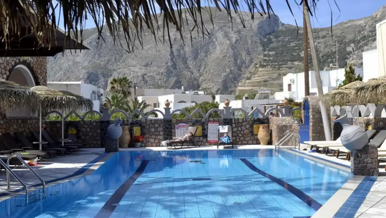 Hotel Polydefkis Kamari Santorini se nalazi na oko 50 metara udaljenosti od plaže letovališta Kamari, u neposrednoj blizini prdavnica, restorana, kafića, barova.
