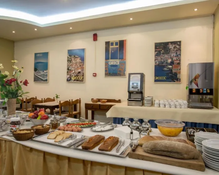 Hotel raspolaže restoranom sa klimatizacijom, kafićem i barom. Opcije ishrane uključuju noćenje sa doručkom i polupansion, kao i all inclusive. Doručak se služi u obliku bogatog švedskog stola, dok je mogućnost dečijih obroka dostupna na zahtev.