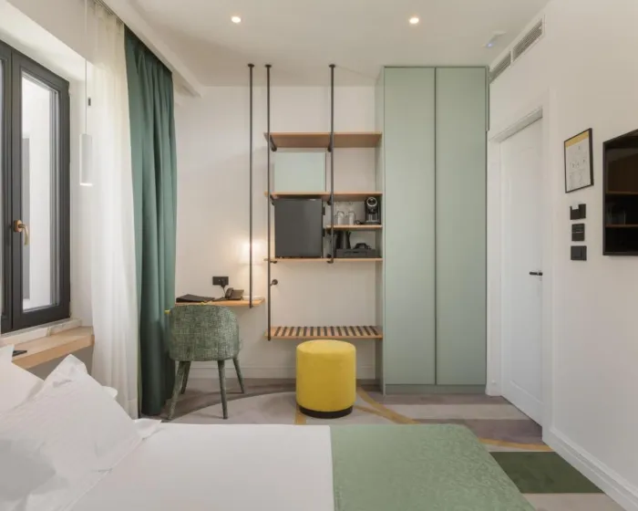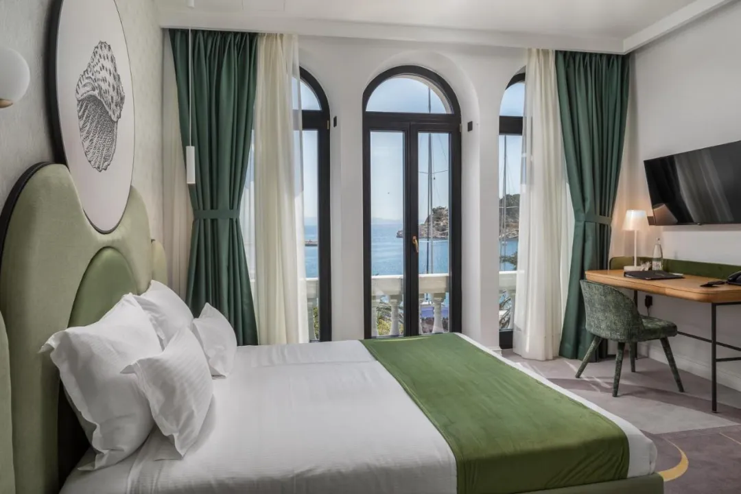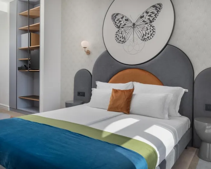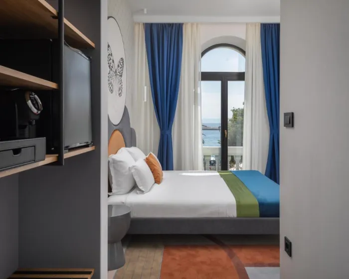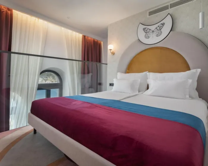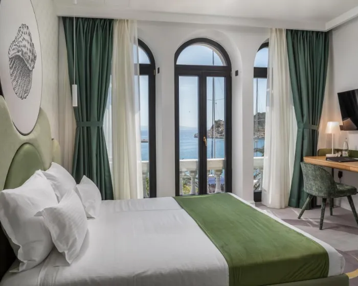 Sobe su opremljene klima uređajem i centralnim grejanjem. Mnoge sobe imaju pogled na more, što stvara posebno lepu atmosferu. Sve sobe su sa tepihom i uključuju bračni krevet i sofu na rasklapanje. Dodatni kreveti mogu biti zatraženi. Sef, mini bar i radni sto su takođe dostupni. Frižider i čaj/kafa aparat su standardne karakteristike. Postoji pegla za goste. Direktni telefonski aparat, televizor sa satelitskim/ kablovskim kanalima i WiFi (bez dodatne naplate) su takođe obezbeđeni. Papuče su uključene. Kupatila su opremljena tušem i uključuju fen za kosu. Kao posebna karakteristika, kupatila su takođe opremljena kozmetičkim proizvodima i izborom peškira. Hotel ima porodične sobe i sobe za nepušače.