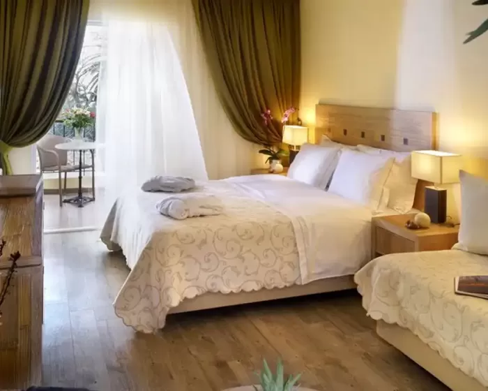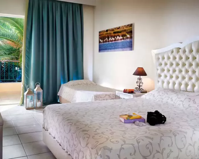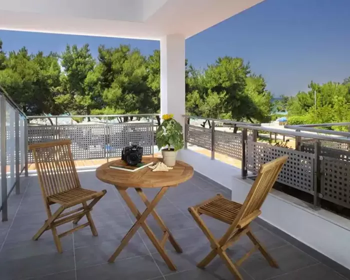 Standardne sobe: oko 25m², za 2 - 4 osobe (dva kreveta i pomoćni), neke imaju i pogled na more. Promo sobe su identične opremljenosti i kvadrature, smeštene u prizemlju.