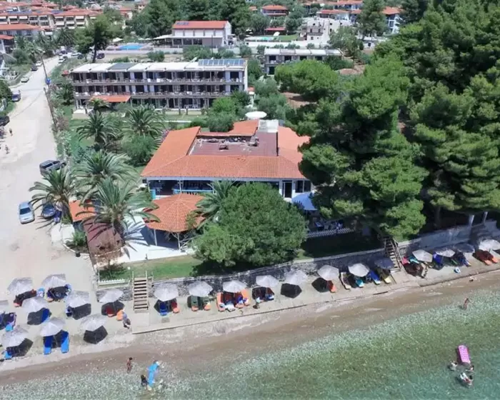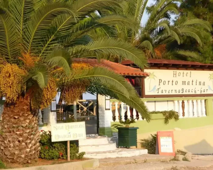 Hotel Porto Matina Metamorfosis je smešten u centru popularnog letovališta i vazdušne banje Metamorfozi, na samoj uredjenoj peščanoj plaži, na koju se izlazi iz restorana hotela. Kako se nalazi u centru mesta, odmah ispod glavnog parka i trga, u neposrednoj blizini objekta se nalaze brojni kafići, picerija, tradicionalne taverne i restorani, a u glavnoj ulici su marketi, piljara, apoteka, i svi potrebni turistički sadržaji. Dečiji zabavni park je na nekoliko koraka od hotela, u uredjenom glavnom parku i trgu mesta. Hotel Porto Matina u svom sastavu ima standard sobe i apartmane, koji mogu ugostiti do pet odraslih osoba, uredjenu baštu, kao i otvoreni restoran na plaži, gde se svakog utorka održava tradicionalno grčko veče, sa ugodnim programom uz poznate zvuke buzukija i uz ples kultrurno umetničkih društava. U restoranu se služe doručak i večera, po principu švedskog stola.