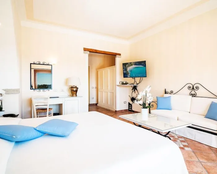 Klima uređaj i mogućnost podešavanja centralnog grejanja osiguravaju da sobe održavaju udobne temperature. U većini jedinica, gosti mogu uživati u pogledu na more sa balkona ili terase. Sobe imaju krevet queen size i sofu. Kreveti za decu i pomoćni ležajevi mogu se zatražiti za mlađe goste. Na raspolaganju su i sef i mini bar. Direktni telefonski poziv, televizor sa satelitskim/kablovskim kanalima i Wi-Fi (bez dodatnih troškova) pružaju sve neophodno za udoban odmor. Kupatila su opremljena tušem i kadom, kao i fenom za kosu. Gosti mogu takođe rezervisati sobe prilagođene invalidskim kolicima sa pristupačnim kupatilima. Hotel ima porodične sobe i sobe za nepušače.
