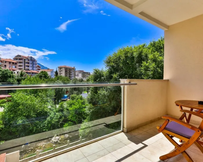 Smještena na 800 metara od plaže Bečići i 8,2 kilometara od Svetog Stefana, Horizon Residences Andjela nudi sobe sa klima uređajem i pr