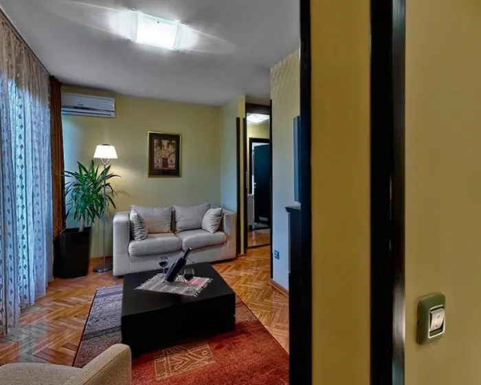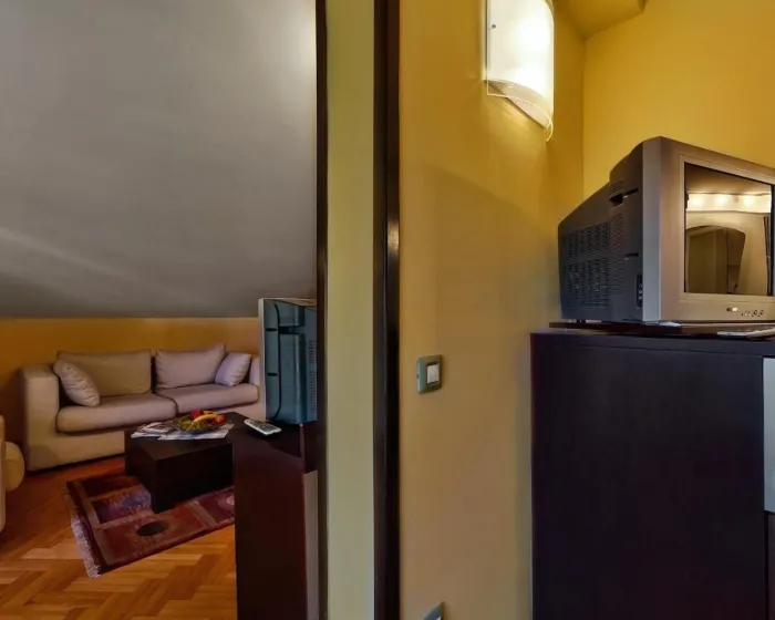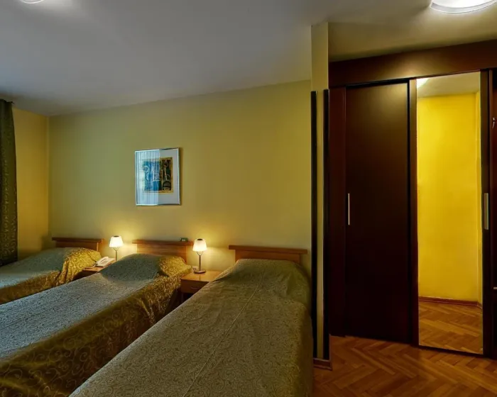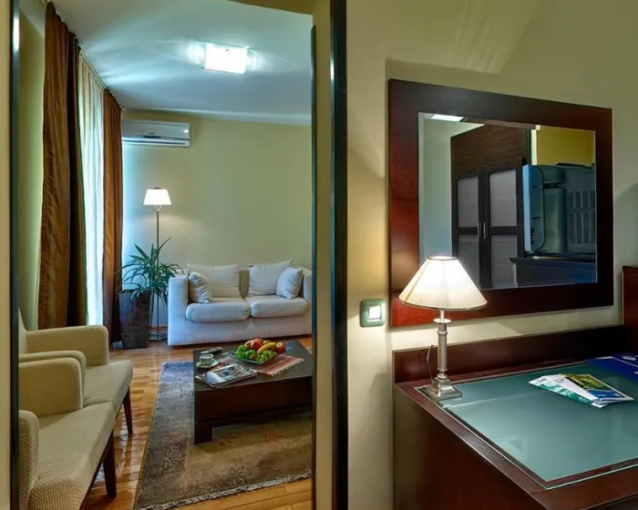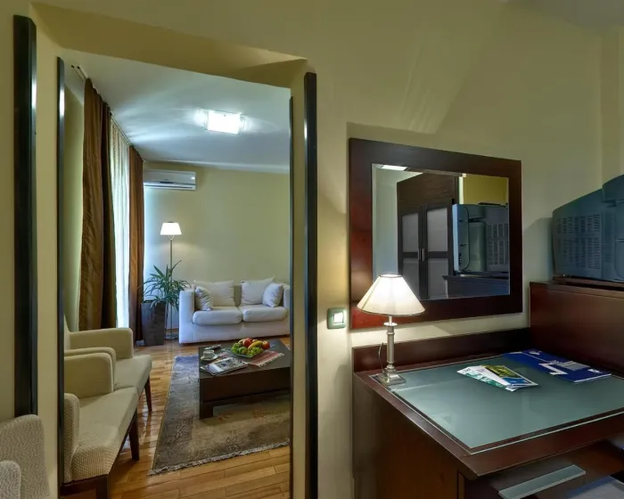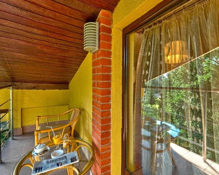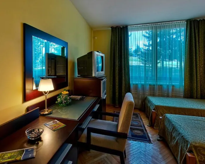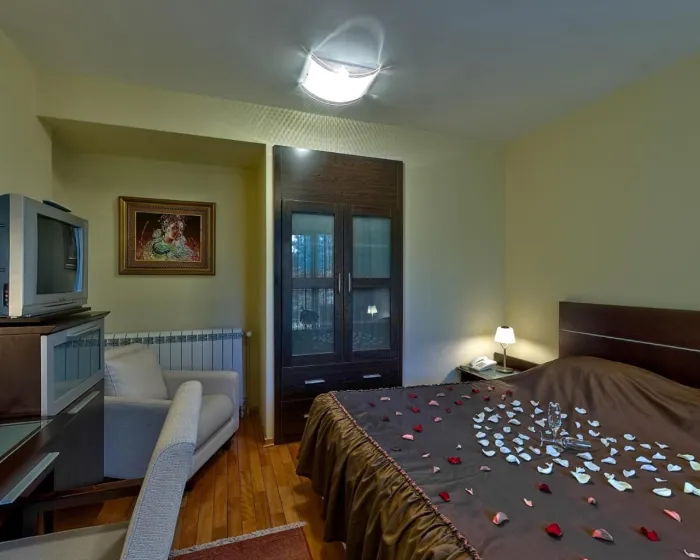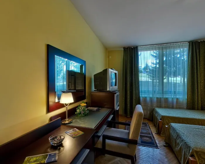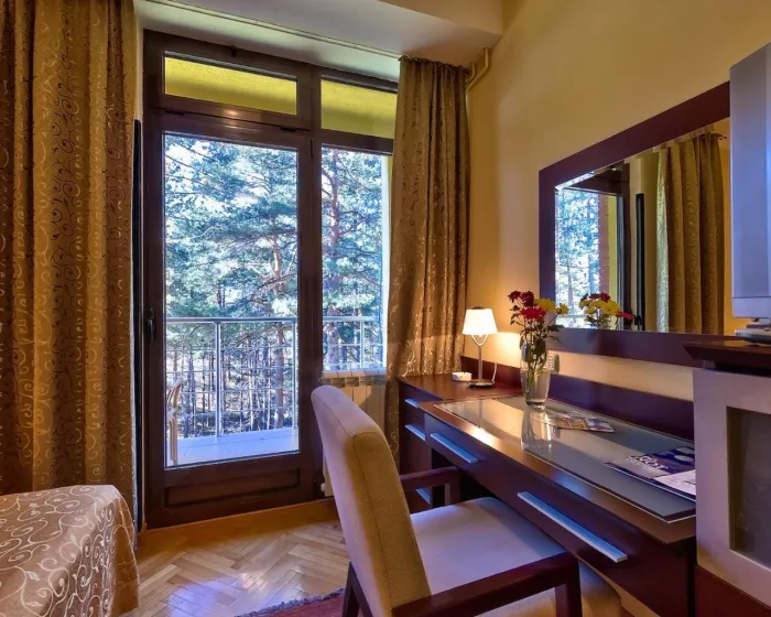 Klima uređaj i centralno grejanje obezbeđuju udobnu temperaturu u sobama. Gosti mogu uživati u pogledu na planinu sa balkona ili terase. Sobe imaju bračni krevet i sofu na razvlačenje. Tu je i radni sto, kao i, uz doplatu, minibar. Dodatnu udobnost pruža frižider. Opremljene telefonom, televizorom sa satelitskim/ kablovskim kanalima i Wi-Fi mrežom (bez dodatne naknade), sobe omogućavaju gostima da ostanu povezani i zabavljeni. Kupatila su opremljena tuš kabinom i kadom, kao i fenom za kosu. Kao posebna pogodnost, kupatila takođe sadrže kozmetičke proizvode i izbor peškira. Hotel ima porodične sobe i sobe za nepušače.