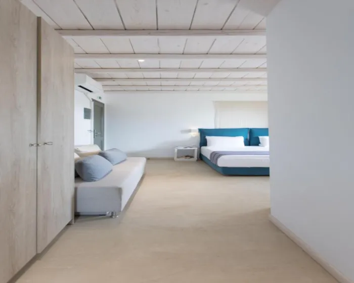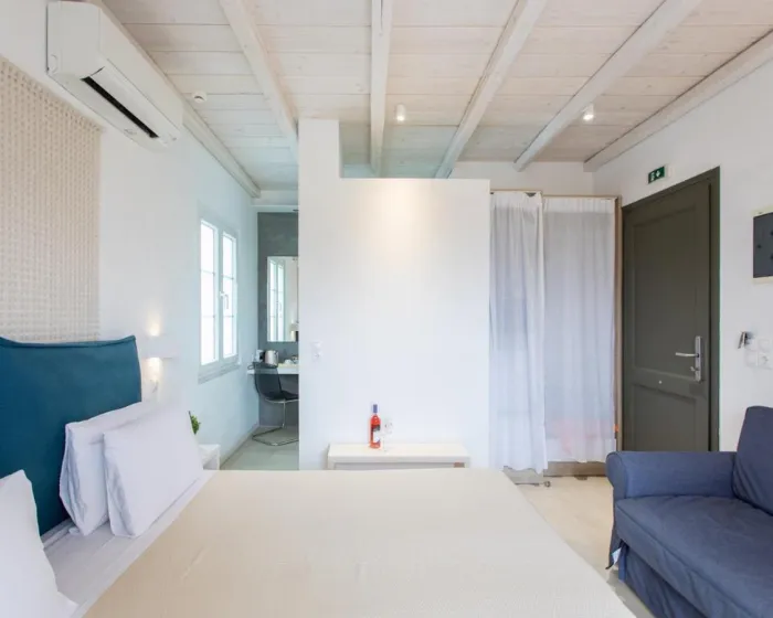 Sobe su opremljene klima uređajem koji omogućava prijatnu temperaturu. Gostima je na raspolaganju balkon ili terasa sa pogledom na more. U sobama se nalaze bračni ili king size ležaj, a dodatni ležajevi su dostupni na zahtev. Oprema uključuje sef, mini bar i radni sto, kao i čajnu kuhinju sa frižiderom i aparatom za kafu ili čaj. Gostima su na raspolaganju pegla i presa za pantalone. Standardna oprema obuhvata telefon, televizor sa satelitskim ili kablovskim kanalima, radio, CD i DVD plejer, kao i WiFi. Kupatila su opremljena tušem, kadom i hidromasažnom kadom, a gostima su na raspolaganju fen za kosu i telefon. Hotel raspolaže porodičnim i nepušačkim sobama.