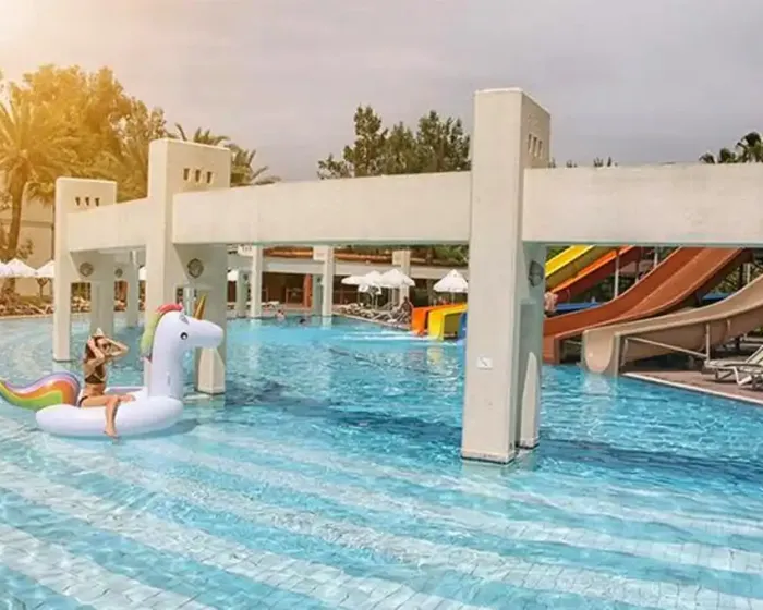 recepcija, glavni restoran, a la carte restorani, nekoliko barova u okviru hotelskog kompleksa, otvoreni i zatvoreni bazen za odrasle i decu (tri bazena, od toga jedan za decu), aqua park, SPA centar (tursko kupatilo, fitnes, sauna, salon lepote sa raznim tretmanima, masaže, spa programi), mini klub za decu 4-12 godina, tenis, stoni tenis, sportovi na vodi. Wi Fi internet u zajedničkim prostorijama je besplatan; usluge i aktivnosti uz doplatu: a la carte restorani, sveže ceđeni sokovi , uvozna pića, sva flaširana i pića u limenci, osvetljenje za teniske terene, oprema za tenis, internet kafe u hotelu, sportovi na vodi, masaže, Spa centar: salon lepote, kozmetički i SPA tretmani, frizerski salon, servis za pranje rublja, telefon, fax, doktor, prodavnice, rent a car, usluge čuvanja dece, bilijar, kompjuterske igre