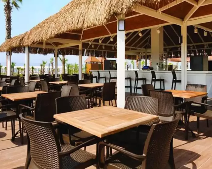 Suncobrani, ležaljke, peškiri, i bar na plaži su besplatni.