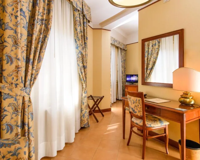 Klima uređaj i centralno grejanje osiguravaju da sobe održavaju udobnu temperaturu. Sobe imaju bračni krevet i sofu. Kreveti za decu i pomoćni ležajevi mogu se zatražiti za mlađe goste. Mini bar je obezbeđen. Telefon, TV i WiFi (bez dodatne naknade) pružaju sve što je potrebno za udoban odmor. Fen za kosu i telefon dostupni su u kupatilima, koja uključuju tuš kabinu. Hotel ima sobe za nepušače i sobe za pušače.