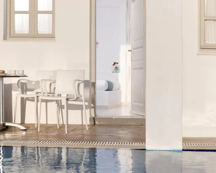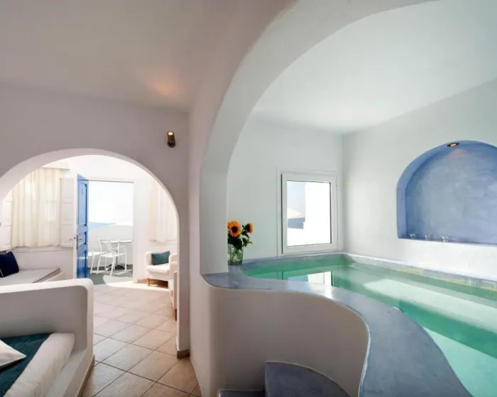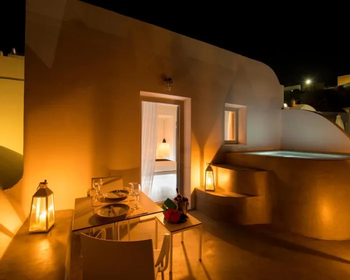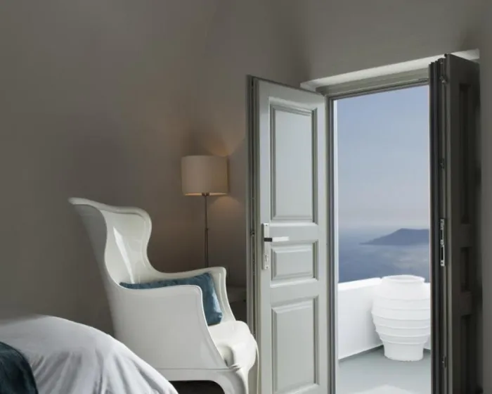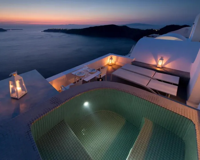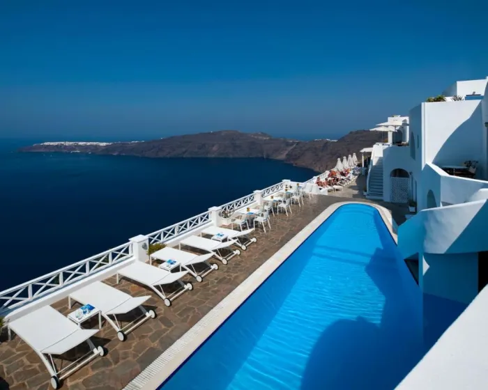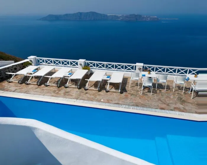 Izgrađen na ivici litice, u slikovitom selu Imerovigli, ovaj hotel gleda na duboko plave vode Egejskog mora i impresivnu lepotu vulkanskih litica, pružajući gostima pogled na predivne zalaske sunca. Gosti hotela mogu uživati u opuštenom, mirnom i nezaboravnom boravku.