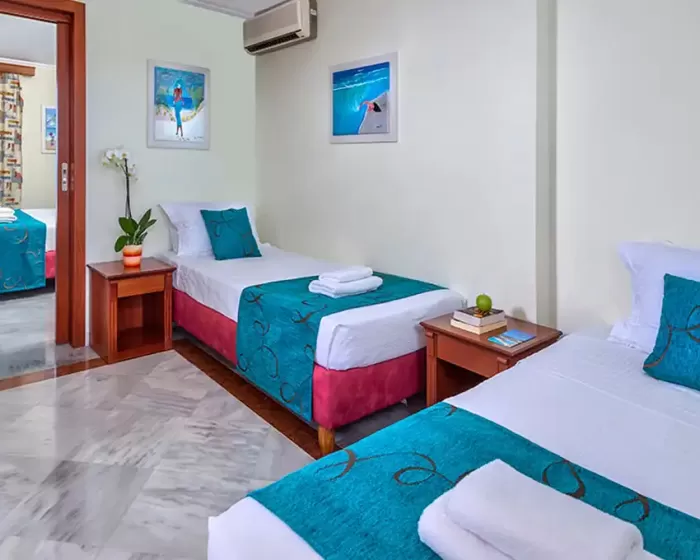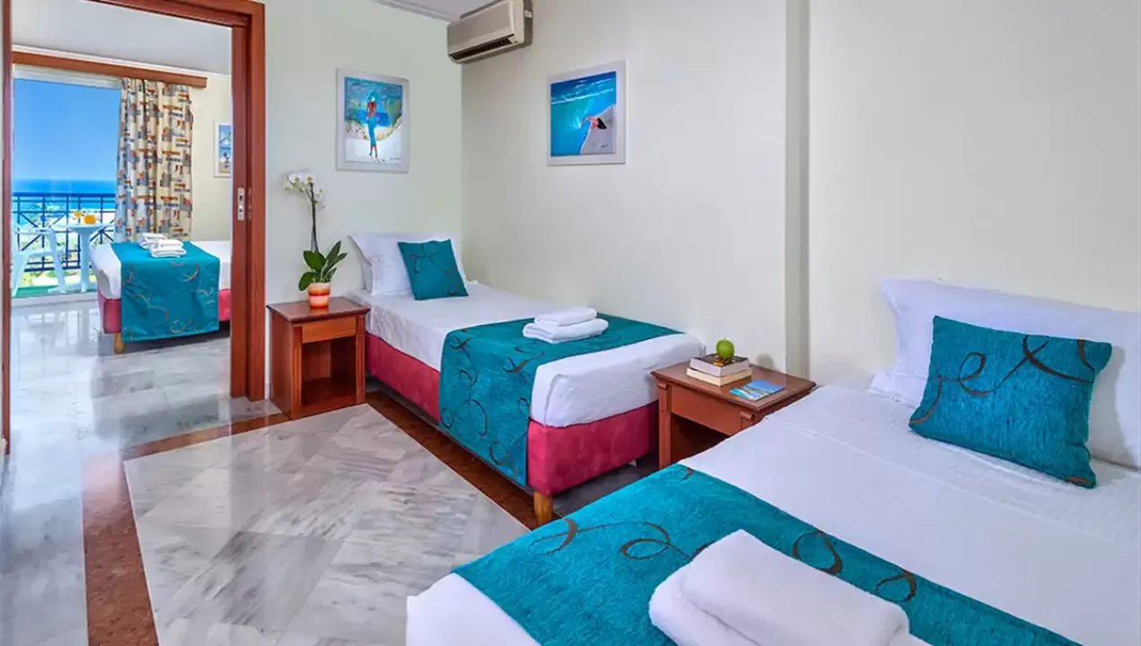 Ukupno 133 sobe: Singles GV, 4 Doubles Superior SV/Private Pool (~24 m²), 36 Doubles Superior SV (~24 m²), 46 Deluxe Doubles SV/Jacuzzi in Bath (~25 m²), Suites Family 2-Bedroom SV (~33 m²). U sobama: klima uredjaj, SAT TV (ruski kanali, muzički kanal), flat screen TV, telefon sa direktnim biranjem, kupatilo (kada / tuš), fen za kosu, sef, frižider, bademantili i papuče, pribor za kafu/čaj, balkon / terasa.Deluxe Doubles SV/Jacuzzi in Bath - Pogled na more, kupatlo sa djakuzi kadom.New! Double Superior SV/Private Pool - 2 odvojena kreveta, privatni bazen.Double Superior SV - 2 odvojena krevetaSuite Family 2-Bedroom SV - Spavaća soba sa bračnim krevetom, druga soba sa 2 odvojena kreveta ili BunkBed, 2 TV-a, 2 klima uredjaja.Paket dobrodošlice po dolasku: boca vode, voće.