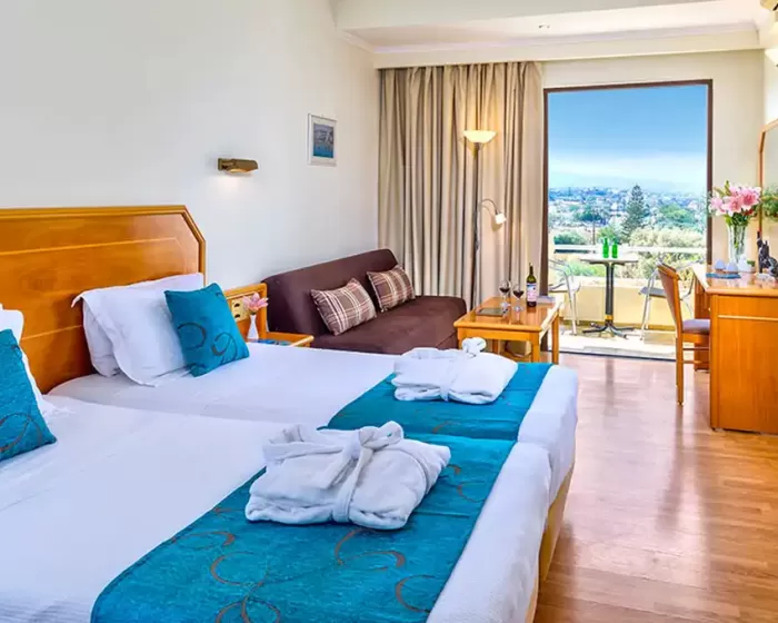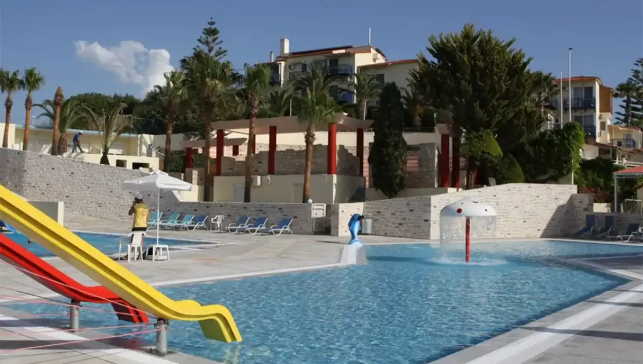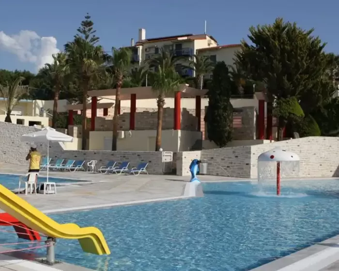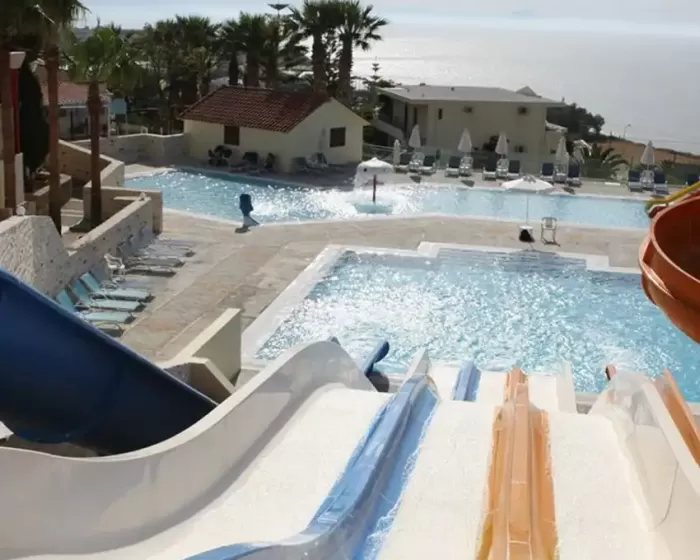 Hotel Rethymno Mare and Water Park Skaleta je udoban hotelski kompleks smešten na  brdu. Pogled na more i slikovite planine. Duga peščana plaža, od koje je udaljen oko 150 metara, označena je plavom zastavom Evropske unije. Udobne sobe, restorani, barovi, internet, bazen, konferencijske sale, prodavnice, room service, dečiji klub, sport, zabava, visok kvalitet usluga. Idealan izbor za nezaboravan porodični odmor. Odmaralište mesto Scaleta, 11 kilometara istočno od grada Retimna, 64 kilometara od grada Herakliona, 70 kilometara od medjunarodnog aerodroma Nikos Kazantzakis Heraklion.