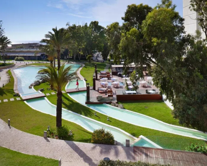 Hotel Palace Ixia Rodos se nalazi na oko 50 metara od peščano-šljunkovite plaže u mestu Iksija, na zapadnoj obali ostrva, 4 kilometara od grada Rodosa, 12 kilometara od aerodroma.
