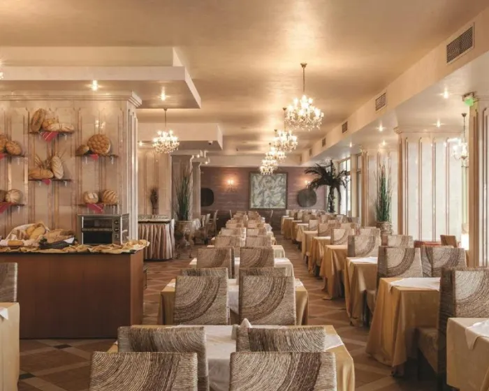 U ponudi su restoran sa klima uređajem, kafić, bar i pab. Gosti mogu koristiti all inclusive uslugu. Doručak, ručak i večera služe se na bifeu, a ručak se može poslužiti i kao fiksni meni. Hotel nudi i užine, kao i izbor alkoholnih i bezalkoholnih pića.