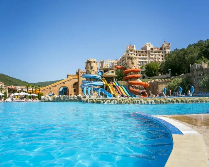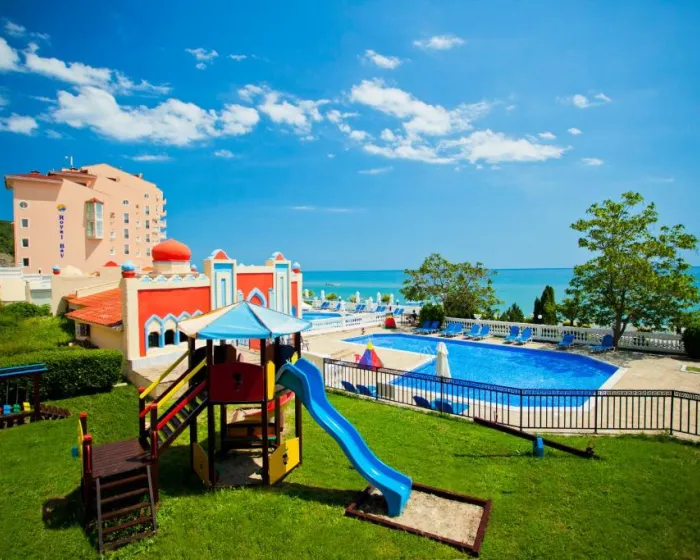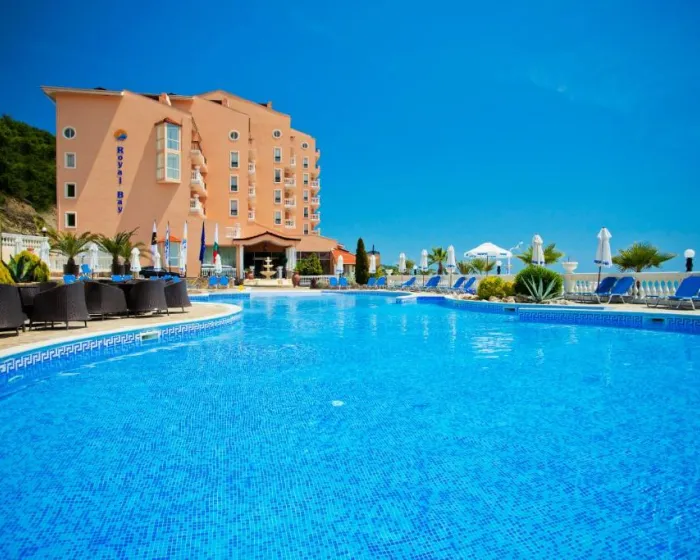 Hotel Royal Bay Elenite, Ovaj elegantni hotel nalazi se u turističkoj zoni Elenite, direktno pored peščano-šljunkovite plaže. Centar sa prodavnicama, restoranima, barovima, pabovima i mestima za zabavu udaljen je oko 300 metara i lako je dostupan pešice. Veze sa javnim prevozom nalaze se na oko 500 metara.