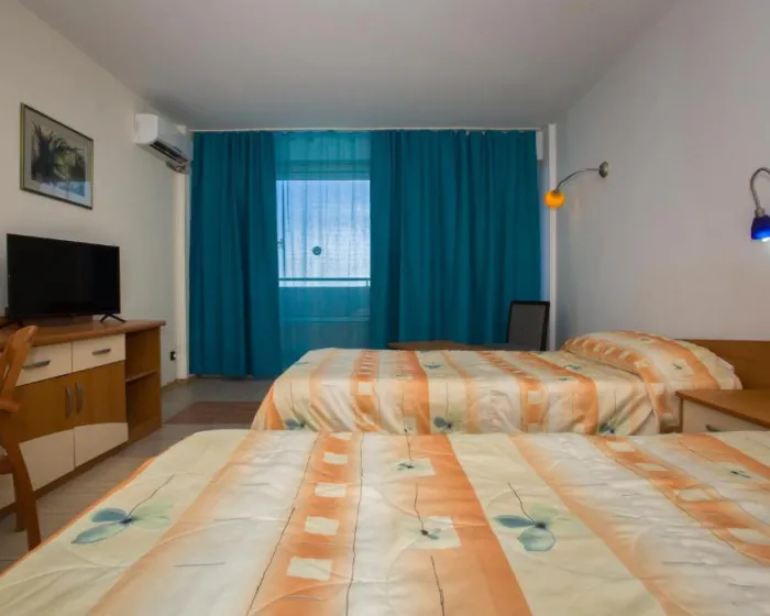 Sobe imaju klima uređaj. Gosti mogu uživati u pogledu na more sa balkona ili terase. Sobe imaju bračni krevet ili sofu na razvlačenje. Dodatni ležajevi mogu se zatražiti. Dostupni su sef, minibar i radni sto. Frižider je deo standardne opreme. Gostima je na raspolaganju i pegla. Direktna telefonska linija, televizor sa satelitskim i kablovskim kanalima i WiFi obezbeđuju udobnost. Kupatila su opremljena tušem i kadom, a imaju fen za kosu i telefon. Na zahtev se mogu rezervisati sobe prilagođene osobama sa invaliditetom. Hotel nudi porodične sobe, sobe za nepušače i sobe za pušače.