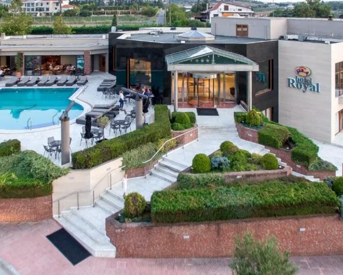 Royal Hotel Perea je luksuzni hotel sa 4 zvezdice, smešten na brdu u blizini mesta Perea, sa panoramskim pogledom na zaliv Thermaikos i grad Solun. Hotel je udaljen oko 6 km od međunarodnog aerodroma "Makedonija" i u blizini je atrakcija poput kazina Regency, tržnog centra "Mediterranean Cosmos" i popularnih plaža Perea, Agia Triada i Epanomi.
