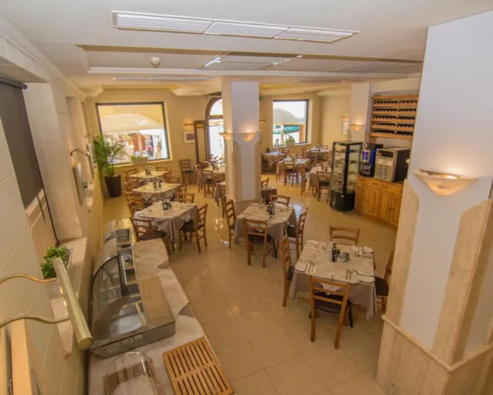 Gostima su na raspolaganju dva restorana, sala za doručak, kafić i bar. Moguće je rezervisati noćenje sa doručkom, polupansion ili pun pansion. Bogat doručak na bazi švedskog stola pruža odličan početak dana. Za ručak i večeru gosti mogu birati između à la carte ponude i menija. Osoblje je na raspolaganju i za pripremu dečjih obroka.