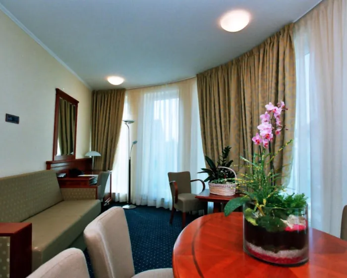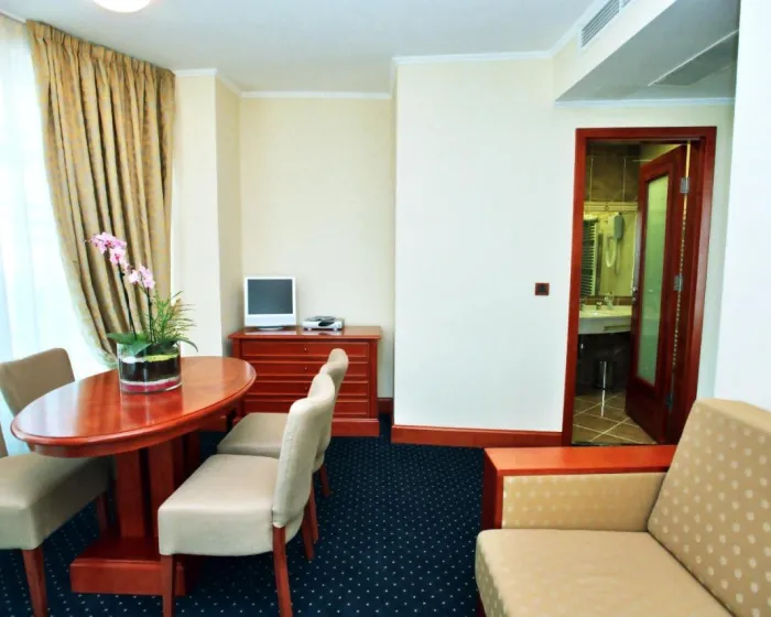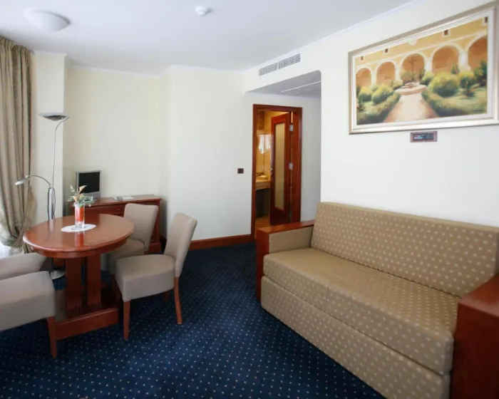 Klima uređaj, centralno grejanje i ventilator osiguravaju da sobe održavaju prijatne temperature. Gosti mogu uživati na balkonu ili terasi. Sve sobe su sa tepihom i uključuju bračni krevet. Dodatni kreveti mogu biti zatraženi. Sef, minibar i radni sto su takođe dostupni. U sobama se nalazi čajna kuhinja. Tu je i veš mašina, set za peglanje i sušilica. Telefon, televizor sa satelitskim/ kablovskim kanalima, radio, adapter za utičnicu i WiFi (bez dodatne naknade) pružaju sve neophodno za udoban odmor. Papuče su uključene. Kupatila su opremljena tušem i hidromasažnom kadom, kao i fenom za kosu. Za dodatnu udobnost u kupatilima, gostima se nude kozmetički proizvodi. Hotel ima porodične sobe i sobe za nepušače.